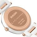 Женские кварцевые часы Rado — это изысканный аксессуар с современным дизайном. Корпус диаметром 31 мм выполнен из высокотехнологичной керамикиВысокотехнологичная керамикаИнновационный запатентованный Rado материал с гладкой или матовой поверхностью. Керамика за счёт кристаллической структуры обладает повышенной устойчивостью от возникновения царапин. Материал способен принимать температуру тела человека, обеспечивая невероятный комфорт при ношении. и нержавеющей стали с PVD-покрытиемPVDУльтратонкое покрытие наносится в технике вакуумного напыления, сочетает в себе нитрид титана особой прочности со слоем золота или оксида хрома. Несёт в себе декоративную или защитную функцию. розового золота. Циферблат белого цвета оформлен аналоговым дисплеем. Циферблат защищён выпуклым сапфировым стекломСапфировое стеклоПрочный и надёжный материал из кристалла сапфира синтетического происхождения, характеризующийся особой твёрдостью и устойчивостью к царапинам и повреждениям.. Окошко даты расположено в положении 3 часов. Механизм — кварцевый. Часы оснащены браслетом из комбинации керамики и стали с PVD-покрытиемPVDУльтратонкое покрытие наносится в технике вакуумного напыления, сочетает в себе нитрид титана особой прочности со слоем золота или оксида хрома. Несёт в себе декоративную или защитную функцию. и застёжкой «бабочка» с кнопкамиЗастёжка "бабочка"Такой вид застёжки дополняется предохранителями, помогающими избежать случайного раскрытия браслета. Обладают изящным исполнением. . Водонепроницаемость 50 м позволяет использовать часы в повседневных условиях. Гарантия — 5 лет на механизм, 2 года на изделие. Идеальный выбор для тех, кто ценит стиль, качество и универсальность.