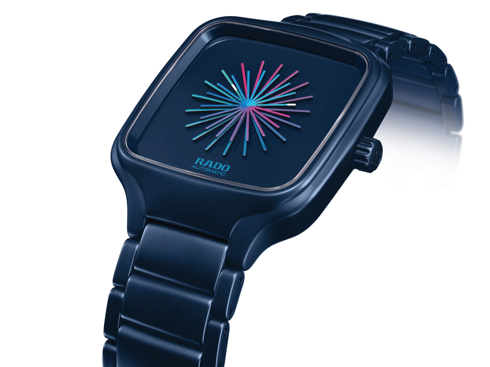 Компания Rado вновь с гордостью сообщает о пополнении коллекции True Square новой моделью часов True Square Over the Abyss. Это результат сотрудничества с дизайнерским дуэтом из Нью Дели Thukral and Tagra. Часы подчеркивают временность всего и акцентируют внимание на важности общения с другими людьми. Индийский дуэт обратился к концепции социального дизайна, чтобы вместе с экспертом в материалах создать часы с уникальным отображением времени, которые показывали бы не только местное время владельца часов, но также время в других часовых поясах мира. Эти часовые пояса обозначены при помощи 37 стрелок, окрашенных в цвета, плавно перетекающие из одного в другой — от синего до розового — и создающие эффект сказочного фейерверка в центре циферблата. Два отдельных, но заметных индикатора в виде точек SuperLuminova указывают на местное время. Циферблат с цветными акцентами облачен в квадратный корпус из матовой высокотехнологичной керамики синего цвета диаметром 38 мм — культовые дизайн и форма Rado родом из 70-х, обновленные в духе ХХІ века. Задняя крышка корпуса украшена рисунком под названием Dominus Aeries, созданным дуэтом, который сочетает в себе взгляд на будущее и воспоминания из прошлого. Поэтому верхняя и задняя часть часов являются прекрасными произведениями искусства в исполнении Thukral and Tagra.
