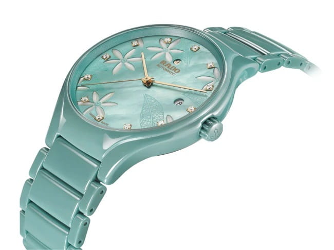 Первая из моделей Chapter 1 («Глава 1») — часы, корпус и браслет которых выполнены из керамики яркого бирюзового, нового для Rado, цвета.
