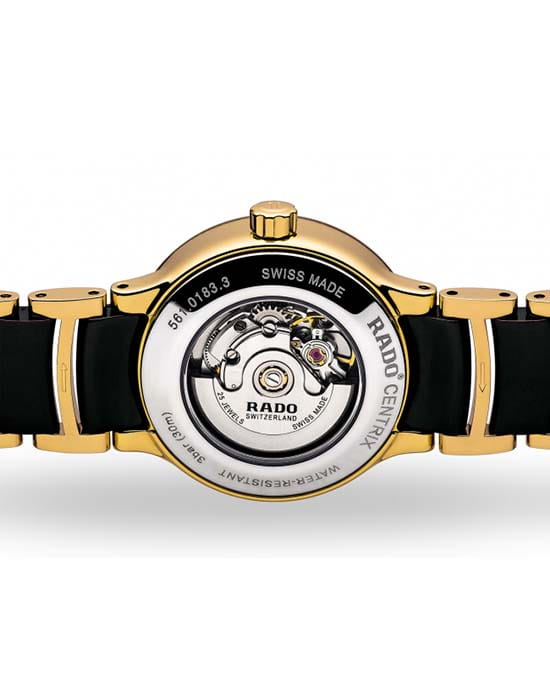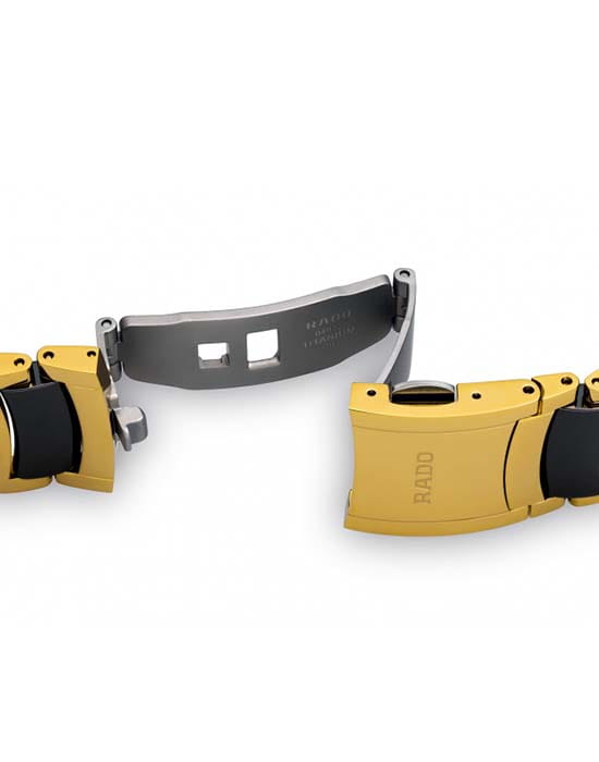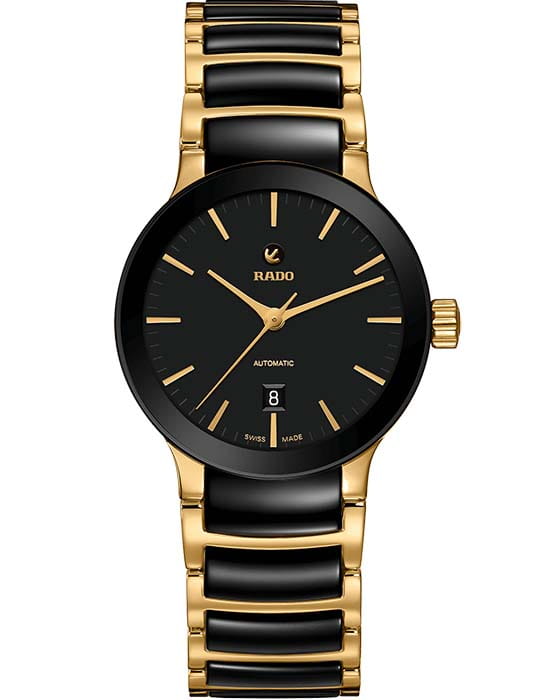 Аксессуар являет собой сочетание классической красоты и современного дизайна, отражающего минимализм. Его безупречная работа обеспечивается за счёт швейцарского автоматического механизма ETA 2671 с 38-часовым запасом хода. Прозрачная задняя крышка позволяет прикоснуться к часовому искусству и понаблюдать за движением деталей. Сапфировое стекло. Браслет из стали 316L с золотистым PVD-покрытиемPVDУльтратонкое покрытие наносится в технике вакуумного напыления, сочетает в себе нитрид титана особой прочности со слоем золота или оксида хрома. Несёт в себе декоративную или защитную функцию. и высокотехнологичной керамикиВысокотехнологичная керамикаИнновационный запатентованный Rado материал с гладкой или матовой поверхностью. Керамика за счёт кристаллической структуры обладает повышенной устойчивостью от возникновения царапин. Материал способен принимать температуру тела человека, обеспечивая невероятный комфорт при ношении.. Водонепроницаемость 30 метров. . Апертура даты. Диаметр корпуса: 28 мм.