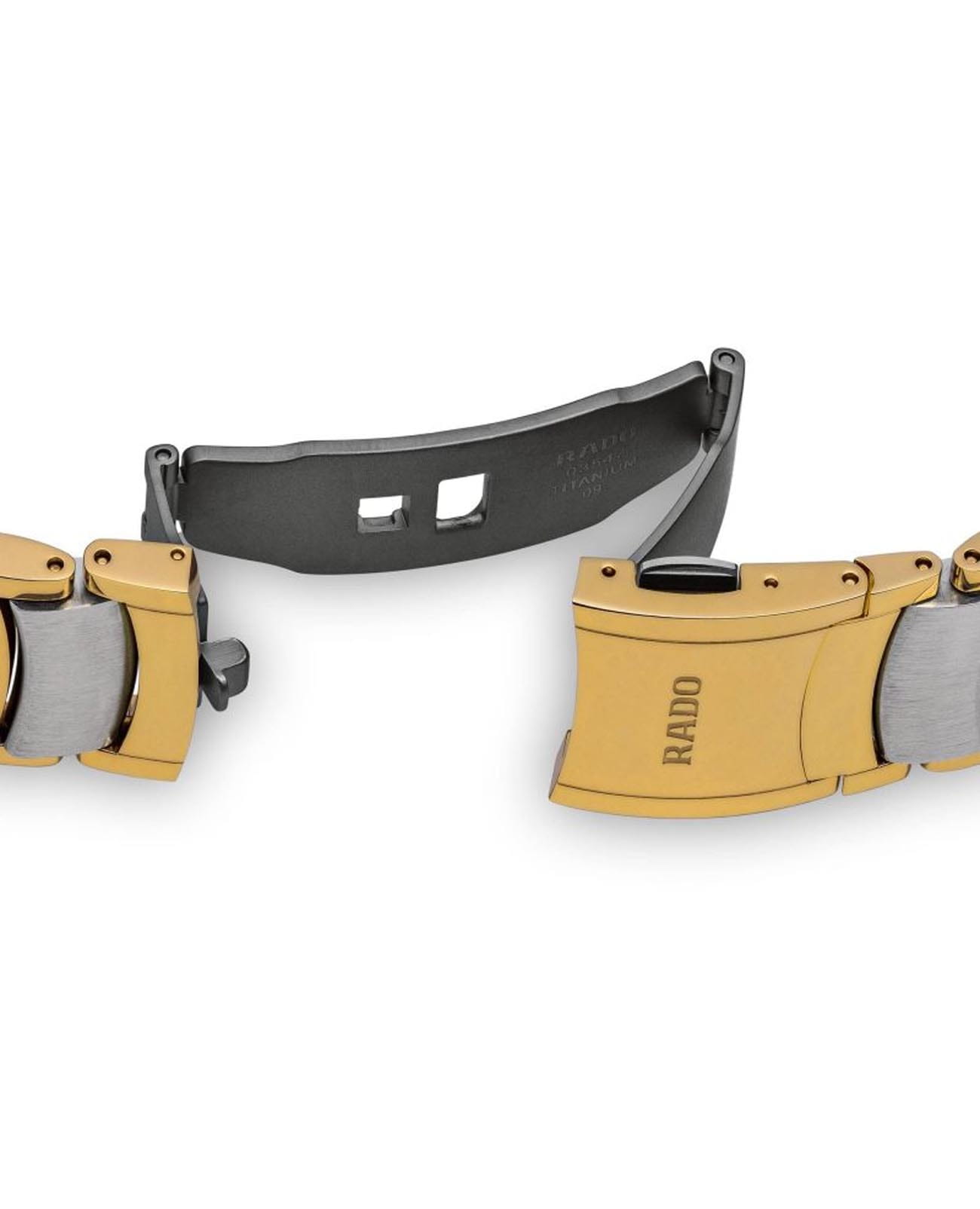Женские швейцарские часы с автоподзаводом Rado Centrix Automatic Diamonds R30080703. Сапфировое стеклоСапфировое стеклоПрочный и надёжный материал из кристалла сапфира синтетического происхождения, характеризующийся особой твёрдостью и устойчивостью к царапинам и повреждениям. устойчивое к мелким механическим повреждениям. Стальной браслет на раскладной застёжкеРаскладная застёжкаТакой тип застёжки используется только на браслетах из металла. Она никогда не раскрывается полностью, происходит разделение на 2 и более частей. Раскладывающая застёжка снизит вероятность потери часов к минимуму.. Корпус и браслет часов изготовлены из нержавеющей стали с PVD-покрытиемPVDУльтратонкое покрытие наносится в технике вакуумного напыления, сочетает в себе нитрид титана особой прочности со слоем золота или оксида хрома. Несёт в себе декоративную или защитную функцию.. Окошко даты находится в положении 3 часа. Циферблат инкрустирован бриллиантами. Класс водозащиты: 30 метров, позволит защитить корпус от случайных брызг или капель дождя. Стрелки с люминесцентным покрытиемЛюминесцентное покрытиеПозволяет считывать показания времени в темноте. Производители наносят на стрелки, часовые индексы, безель или поверхность циферблата светонакопительный состав, дающий холодное свечение..