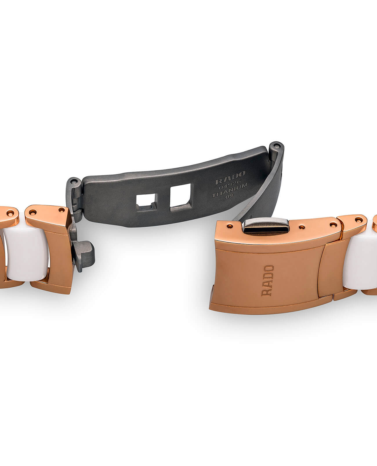 Изысканная модель в минималистичном исполнении грамотно завершит образ. Благодаря роскошному циферблату премиальный аксессуар сразу притягивает внимание, перед блеском 12 бриллиантов в 0,025 карат. Автоподзавод. Швейцарский калибр ETA 2671 имеет запас хода до 38 часов. Скелетонизированная задняя крышка стального корпуса. Сапфировое стекло. Браслет из нержавеющей стали 316L с PVD-покрытиемPVDУльтратонкое покрытие наносится в технике вакуумного напыления, сочетает в себе нитрид титана особой прочности со слоем золота или оксида хрома. Несёт в себе декоративную или защитную функцию. и вставок из высокотехнологичной керамикиВысокотехнологичная керамикаИнновационный запатентованный Rado материал с гладкой или матовой поверхностью. Керамика за счёт кристаллической структуры обладает повышенной устойчивостью от возникновения царапин. Материал способен принимать температуру тела человека, обеспечивая невероятный комфорт при ношении.. Водонепроницаемость 30 метров. Надёжная . Отображение числа. Диаметр корпуса: 28 мм.