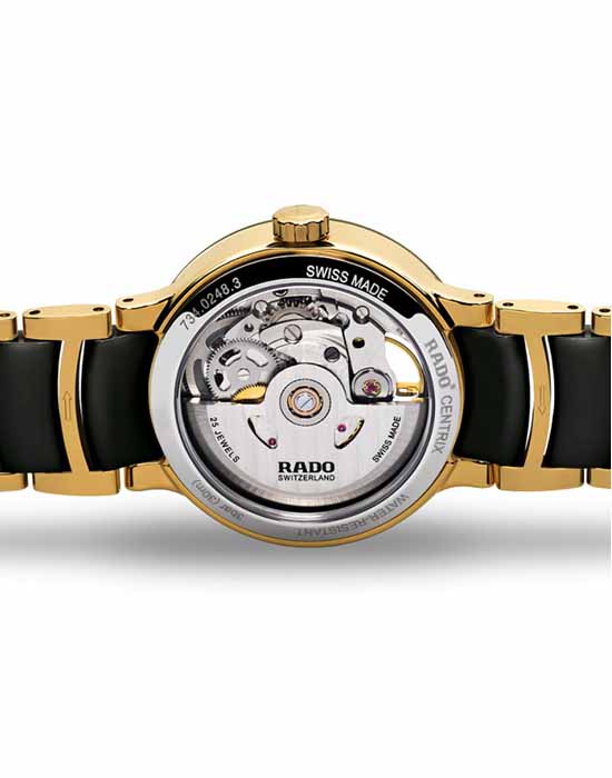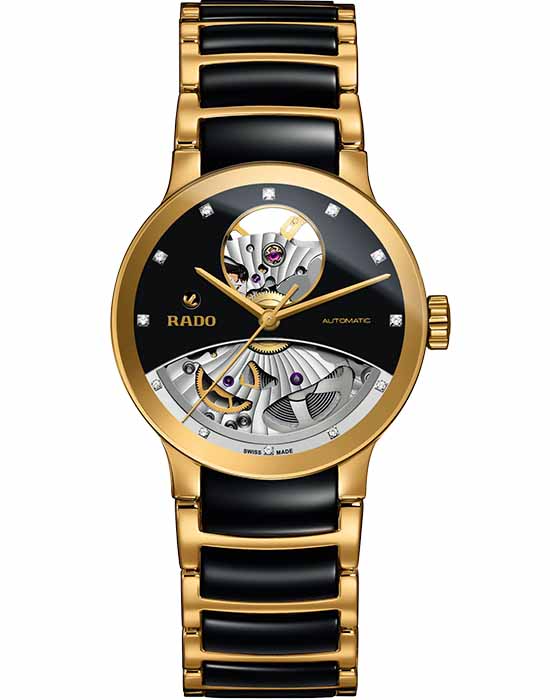 Швейцарские механические часы-скелетоны с автоподзаводом Rado Centrix Automatic Diamonds Open Heart R30246712. Сапфировое стеклоСапфировое стеклоПрочный и надёжный материал из кристалла сапфира синтетического происхождения, характеризующийся особой твёрдостью и устойчивостью к царапинам и повреждениям. устойчивое к мелким механическим повреждениям. Корпус часов изготовлен из нержавеющей стали с PVD-покрытиемPVDУльтратонкое покрытие наносится в технике вакуумного напыления, сочетает в себе нитрид титана особой прочности со слоем золота или оксида хрома. Несёт в себе декоративную или защитную функцию.. Класс водозащиты: 30 метров, позволит защитить корпус от случайных брызг или капель дождя. Браслет из стали PVD-покрытиемPVDУльтратонкое покрытие наносится в технике вакуумного напыления, сочетает в себе нитрид титана особой прочности со слоем золота или оксида хрома. Несёт в себе декоративную или защитную функцию. и высокотехнологичной керамикиВысокотехнологичная керамикаИнновационный запатентованный Rado материал с гладкой или матовой поверхностью. Керамика за счёт кристаллической структуры обладает повышенной устойчивостью от возникновения царапин. Материал способен принимать температуру тела человека, обеспечивая невероятный комфорт при ношении. на раскладной застёжкеРаскладная застёжкаТакой тип застёжки используется только на браслетах из металла. Она никогда не раскрывается полностью, происходит разделение на 2 и более частей. Раскладывающая застёжка снизит вероятность потери часов к минимуму..