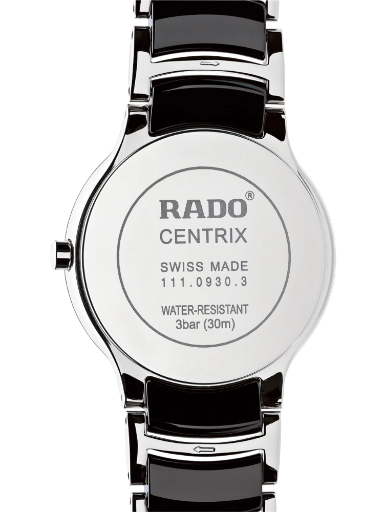 Женские швейцарские часы R30935752 из коллекции Centrix - безупречные линии и невообразимая роскошь. Наручные часы представляют собой воплощение классики и лаконичного дизайна, это идеальный вариант для поддержания солидного имиджа. Они выполнены из нержавеющей стали и высокотехнологичной керамикиВысокотехнологичная керамикаИнновационный запатентованный Rado материал с гладкой или матовой поверхностью. Керамика за счёт кристаллической структуры обладает повышенной устойчивостью от возникновения царапин. Материал способен принимать температуру тела человека, обеспечивая невероятный комфорт при ношении., чёрные вставки привлекательно смотрятся. Минималистичный циферблат инкрустирован 12 бриллиантами в 0,025 карат. Кварцевый калибр ETA 956.112 с высокой точностью хода. Сапфировое стекло противостоит образованию царапин. Производство и сборка: Швейцария.