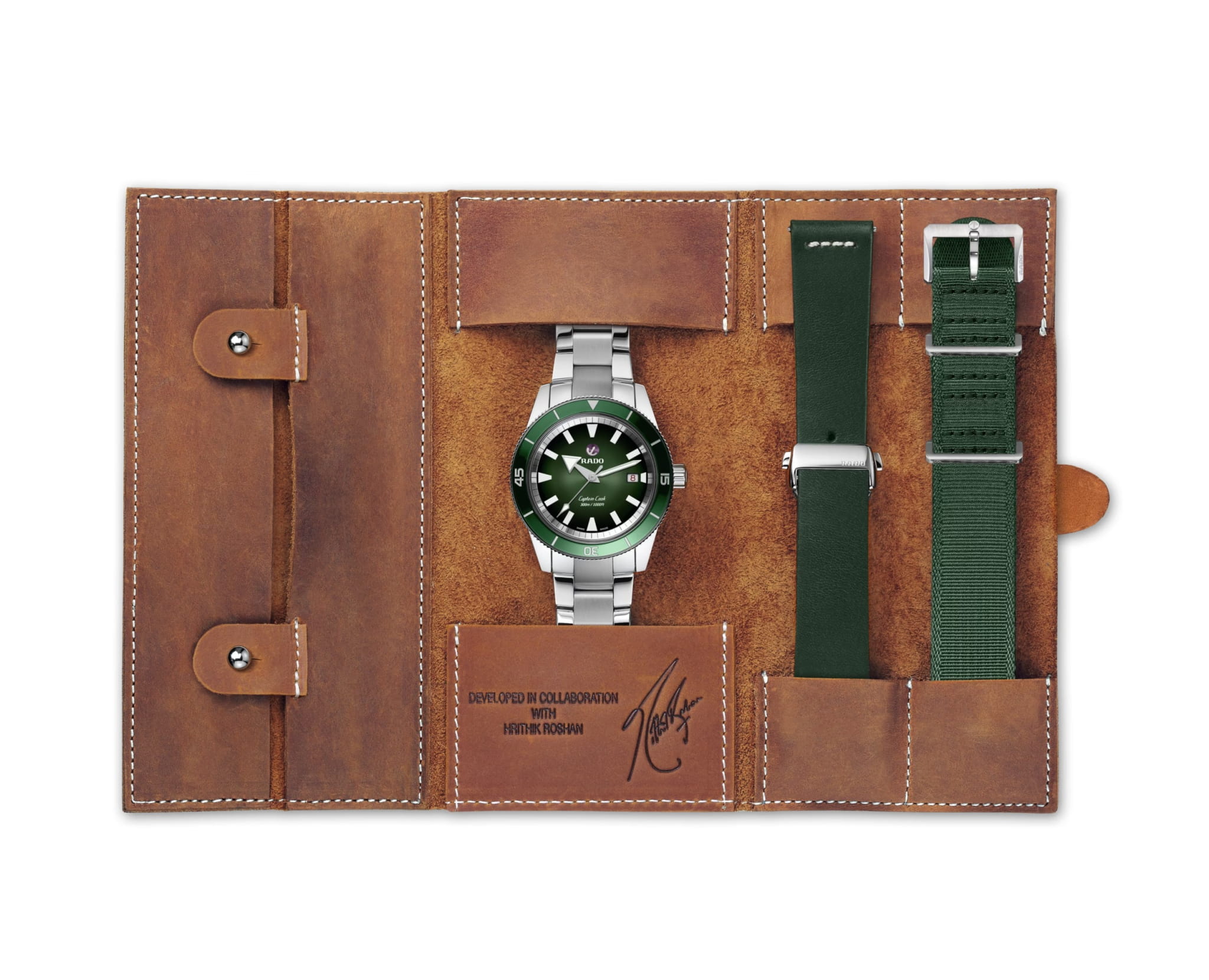 Мужские механические часы с автоматическим механизмом Rado Captain Cook Automatic R32105319. В комплект входит два дополнительных ремешка. Корпус и браслет часов изготовлены из нержавеющей стали. Сапфировое стеклоСапфировое стеклоПрочный и надёжный материал из кристалла сапфира синтетического происхождения, характеризующийся особой твёрдостью и устойчивостью к царапинам и повреждениям. с антибликовым покрытиемАнтибликовое покрытиеСлой оксида металла в 0,13-0,3 микрон, благодаря которому стекло часов не бликует и не отражает свет. Антибликовое покрытие уменьшает отражение света в 10 раз, обеспечивая отличную читаемость показателей циферблата., устойчивое к мелким механическим повреждениям. Стальной браслет на раскладной застёжкеРаскладная застёжкаТакой тип застёжки используется только на браслетах из металла. Она никогда не раскрывается полностью, происходит разделение на 2 и более частей. Раскладывающая застёжка снизит вероятность потери часов к минимуму.. Класс водозащиты: 300 метров, позволит плавать, нырять и заниматься другими водными видами спорта. Вращающийся безельБезельВнешний ободок, закрепляющий стекло. В спортивных часах так называется поворотное кольцо с делениями на циферблате, выполняет роль таймера – замеряет отрезки времени на шкале. Неподвижный безель – элемент декора. Однонаправленно вращающийся безель на дайверских часах позволяет фиксировать моменты погружения и выныривания на поверхность. с PVD-покрытиемPVDУльтратонкое покрытие наносится в технике вакуумного напыления, сочетает в себе нитрид титана особой прочности со слоем золота или оксида хрома. Несёт в себе декоративную или защитную функцию.. Стрелки и метки с люминесцентным покрытиемЛюминесцентное покрытиеПозволяет считывать показания времени в темноте. Производители наносят на стрелки, часовые индексы, безель или поверхность циферблата светонакопительный состав, дающий холодное свечение.. Окошко даты находится в положении 3 часа.