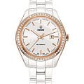 Женские механические швейцарские часы с автоподзаводом Rado Hyperchrome Automatic Diamonds R32524012. Сапфировое стеклоСапфировое стеклоПрочный и надёжный материал из кристалла сапфира синтетического происхождения, характеризующийся особой твёрдостью и устойчивостью к царапинам и повреждениям. устойчивое к мелким механическим повреждениям. Корпус часов изготовлен из нержавеющей стали с PVD-покрытиемPVDУльтратонкое покрытие наносится в технике вакуумного напыления, сочетает в себе нитрид титана особой прочности со слоем золота или оксида хрома. Несёт в себе декоративную или защитную функцию. и керамики. БезельБезельВнешний ободок, закрепляющий стекло. В спортивных часах так называется поворотное кольцо с делениями на циферблате, выполняет роль таймера – замеряет отрезки времени на шкале. Неподвижный безель – элемент декора. Однонаправленно вращающийся безель на дайверских часах позволяет фиксировать моменты погружения и выныривания на поверхность. из керамики украшен бриллиантами. Окошко даты находится в положении 3 часа. Стрелки с люминесцентным покрытиемЛюминесцентное покрытиеПозволяет считывать показания времени в темноте. Производители наносят на стрелки, часовые индексы, безель или поверхность циферблата светонакопительный состав, дающий холодное свечение.. Класс водозащиты: 50 метров, позволит защитить корпус от случайных брызг или капель дождя. Браслет из высокотехнологичной керамикиВысокотехнологичная керамикаИнновационный запатентованный Rado материал с гладкой или матовой поверхностью. Керамика за счёт кристаллической структуры обладает повышенной устойчивостью от возникновения царапин. Материал способен принимать температуру тела человека, обеспечивая невероятный комфорт при ношении. на раскладной застёжкеРаскладная застёжкаТакой тип застёжки используется только на браслетах из металла. Она никогда не раскрывается полностью, происходит разделение на 2 и более частей. Раскладывающая застёжка снизит вероятность потери часов к минимуму..