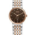 Окошко даты расположено в положении 6 часов, предоставляя удобный доступ к актуальной дате. БезельБезельВнешний ободок, закрепляющий стекло. В спортивных часах так называется поворотное кольцо с делениями на циферблате, выполняет роль таймера – замеряет отрезки времени на шкале. Неподвижный безель – элемент декора. Однонаправленно вращающийся безель на дайверских часах позволяет фиксировать моменты погружения и выныривания на поверхность. из стали PVD-покрытиемPVDУльтратонкое покрытие наносится в технике вакуумного напыления, сочетает в себе нитрид титана особой прочности со слоем золота или оксида хрома. Несёт в себе декоративную или защитную функцию.. Циферблат инкрустирован бриллиантами, что придаёт часам дополнительное очарование и изысканность.