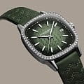Ремешок из телячьей кожи зелёного цвета с фирменной строчкой в форме буквы "W" и раскладной застёжкойРаскладная застёжкаТакой тип застёжки используется только на браслетах из металла. Она никогда не раскрывается полностью, происходит разделение на 2 и более частей. Раскладывающая застёжка снизит вероятность потери часов к минимуму. с двойной системой безопасности гарантирует комфорт и надёжность при ношении. Водозащита до 10 ATM делает часы подходящими для плавания и других водных активностей.