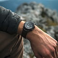 Ремешок из натуральной телячьей кожи чёрного цвета с раскладной застёжкойРаскладная застёжкаТакой тип застёжки используется только на браслетах из металла. Она никогда не раскрывается полностью, происходит разделение на 2 и более частей. Раскладывающая застёжка снизит вероятность потери часов к минимуму. и двойной системой безопасности обеспечивает комфортное ношение и надёжную фиксацию. Водозащита до 10 ATM делает модель подходящей для плавания и других активностей, связанных с водой.