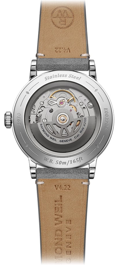 Raymond Weil Millesime — мужские автоматические часы для ценителей элегантности и швейцарского мастерства. Идеальное сочетание утончённого дизайна и функциональности для динамичного образа жизни. Ключевые особенности: Швейцарский автоматический механизм с запасом хода 41 часов и W-образным ротором, демонстрирующимся через сапфировое стеклоСапфировое стеклоПрочный и надёжный материал из кристалла сапфира синтетического происхождения, характеризующийся особой твёрдостью и устойчивостью к царапинам и повреждениям. на задней крышке. Циферблат с метками в виде штрихов, выполненный в лаконичном стиле, защищён сапфировым стекломСапфировое стеклоПрочный и надёжный материал из кристалла сапфира синтетического происхождения, характеризующийся особой твёрдостью и устойчивостью к царапинам и повреждениям., устойчивым к царапинам и ударам. Эргономичная заводная головка с гравировкой логотипа RW подчеркивает внимание к деталям. Кожаный ремешок на стандартной застёжке. Дизайн и детали: Строгий круглый корпус из с минималистичными линиями и полированной отделкой. Прозрачная задняя крышка с (сапфировым стекломСапфировое стеклоПрочный и надёжный материал из кристалла сапфира синтетического происхождения, характеризующийся особой твёрдостью и устойчивостью к царапинам и повреждениям.) позволяет наблюдать за работой механизма. Тонкий профиль и сдержанная цветовая гамма делают часы уместными как с деловым костюмом, так и с повседневной одеждой. Raymond Weil Millesime — это воплощение швейцарской точности и изысканной простоты. Часы для тех, кто ценит надёжность, элегантность и безупречный стиль.