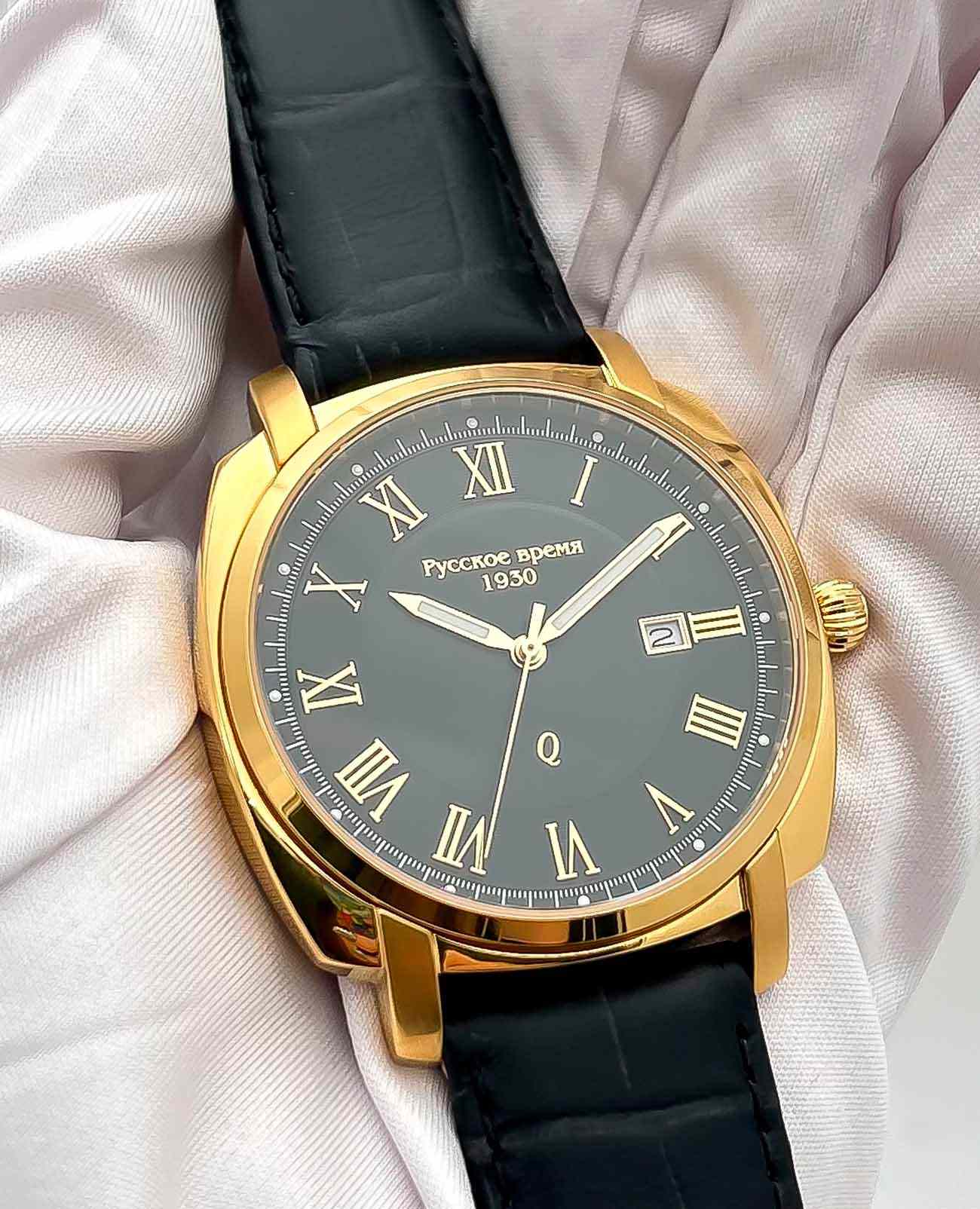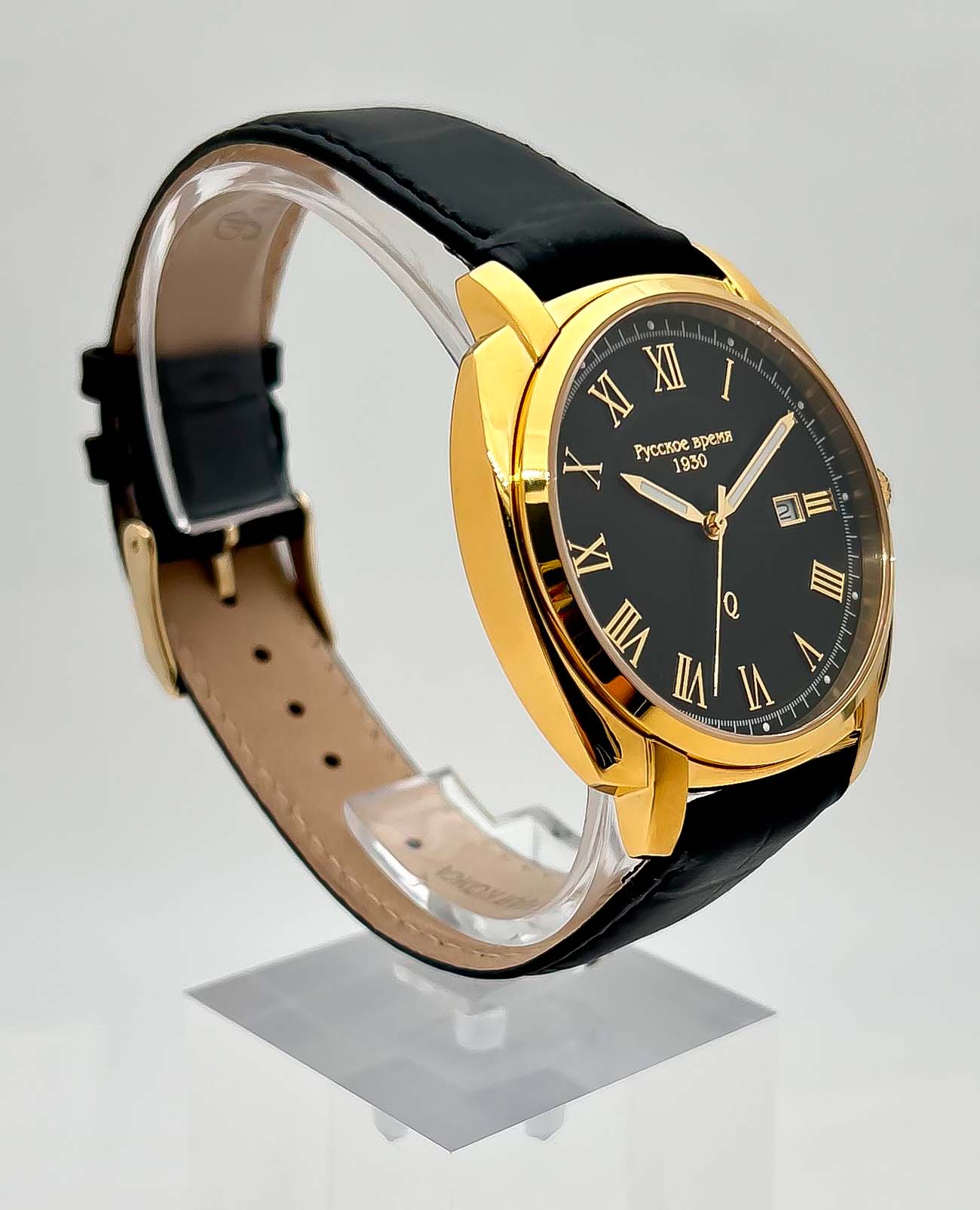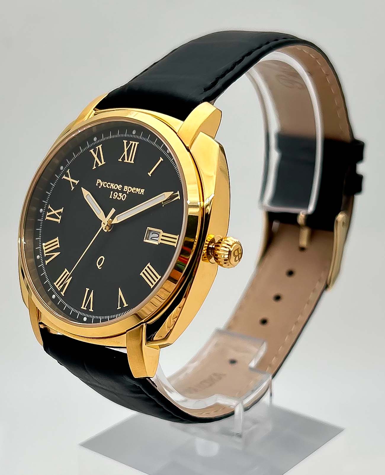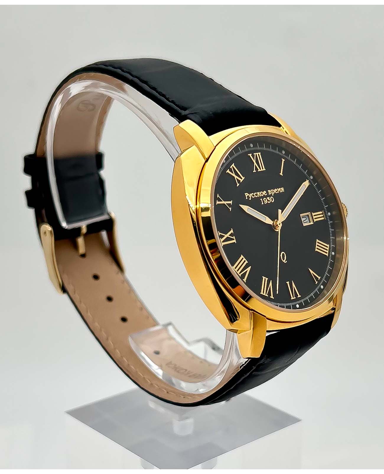 Мужские наручные часы Русское время 9116120 сочетают в себе классический дизайн и современные технологии. Модель обладает круглым корпусом диаметром 40 мм, изготовленным из нержавеющей стали с IP-покрытиемIP-покрытиеМетод ионного напыления. Демонстрирует повышенную устойчивость к истиранию, окислению и химическим веществам. Под воздействием высокого давления и температуры около 1500°C молекулы металла надёжно соединяются с частицами корпуса часов., что обеспечивает высокую устойчивость к внешним воздействиям. Кожаный ремешок на стандартной застежке, гарантирует комфортное ношение и безопасность. Черный циферблат оснащен окном даты на «3 часах». Для защиты используется минеральное стеклоМинеральное стеклоМинеральное стекло представляет собой искусственно выращенный минерал кварца. Такое стекло отличается особой устойчивостью к повреждениям и царапинам. Уступает по некоторым качествам сапфировому стеклу., обеспечивающее прочную защиту от царапин. Часы работают на кварцевом механизме, что гарантирует точное время без необходимости подзаводки. Водонепроницаемость достигает 3 атмосфер (WR30), что позволит защитить корпус от случайных брызг или капель дождя.