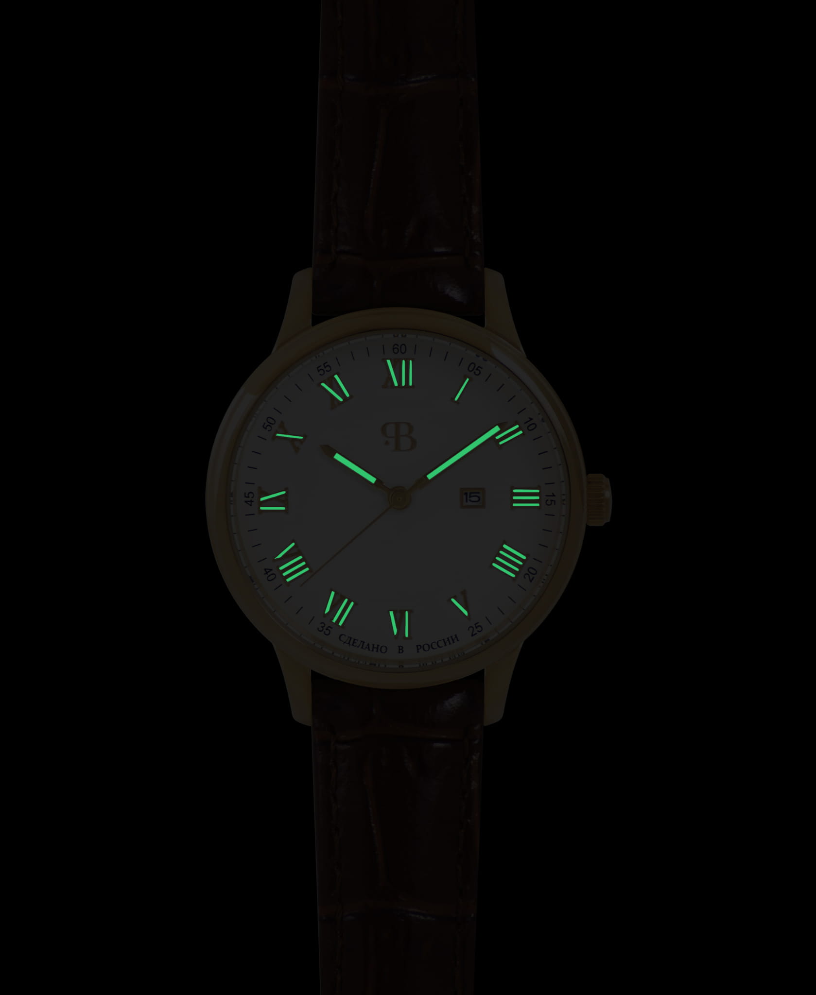 Класс водозащиты часов составляет 30 метров, что позволяет защитить корпус от случайных брызг и капель дождя.Кожаный ремешок на стандартной застежке. Эти часы идеально подойдут для повседневного использования, сочетая в себе стиль, надежность и функциональность. Окошко даты находится в положении 3 часа. Стрелки и метки с люминесцентным покрытиемЛюминесцентное покрытиеПозволяет считывать показания времени в темноте. Производители наносят на стрелки, часовые индексы, безель или поверхность циферблата светонакопительный состав, дающий холодное свечение..
