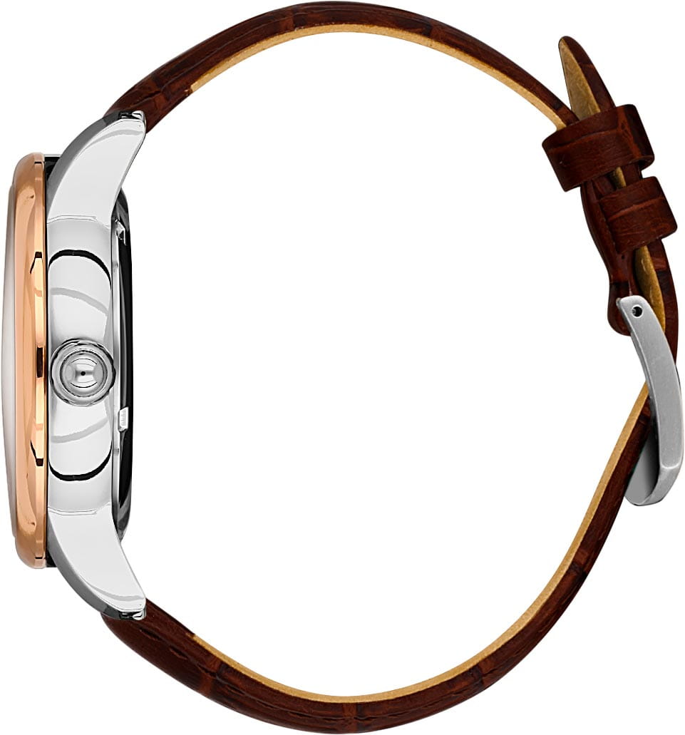Мужские механические часы с автоподзаводом Santa Barbara Polo & Racquet Club — это демонстрация инженерного искусства и изящества. Корпус диаметром 43,8 мм и высотой 52 мм выполнен из стали. БезельБезельВнешний ободок, закрепляющий стекло. В спортивных часах так называется поворотное кольцо с делениями на циферблате, выполняет роль таймера – замеряет отрезки времени на шкале. Неподвижный безель – элемент декора. Однонаправленно вращающийся безель на дайверских часах позволяет фиксировать моменты погружения и выныривания на поверхность. с IP-покрытиемIP-покрытиеМетод ионного напыления. Демонстрирует повышенную устойчивость к истиранию, окислению и химическим веществам. Под воздействием высокого давления и температуры около 1500°C молекулы металла надёжно соединяются с частицами корпуса часов.. Циферблат белого цвета частично скелетонизирован, что позволяет наблюдать за работой механизма. Двухуровневый циферблат оформлен по технологии Sunray («солнечные лучи»), дополнен накладными метками в виде штрихов и фирменным логотипом. Стрелки с люминесцентным покрытиемЛюминесцентное покрытиеПозволяет считывать показания времени в темноте. Производители наносят на стрелки, часовые индексы, безель или поверхность циферблата светонакопительный состав, дающий холодное свечение., обеспечивающим хорошую читаемость в темноте. Циферблат защищён минеральным стекломМинеральное стеклоМинеральное стекло представляет собой искусственно выращенный минерал кварца. Такое стекло отличается особой устойчивостью к повреждениям и царапинам. Уступает по некоторым качествам сапфировому стеклу.. Прозрачная задняя крышка открывает вид на декорированный механизм. Часы оснащены кожаным ремешком с стандартной застёжкой. Водонепроницаемость 50 м позволяет использовать часы в повседневных условиях. Идеальный выбор для тех, кто ценит технологичность, стиль и качество.