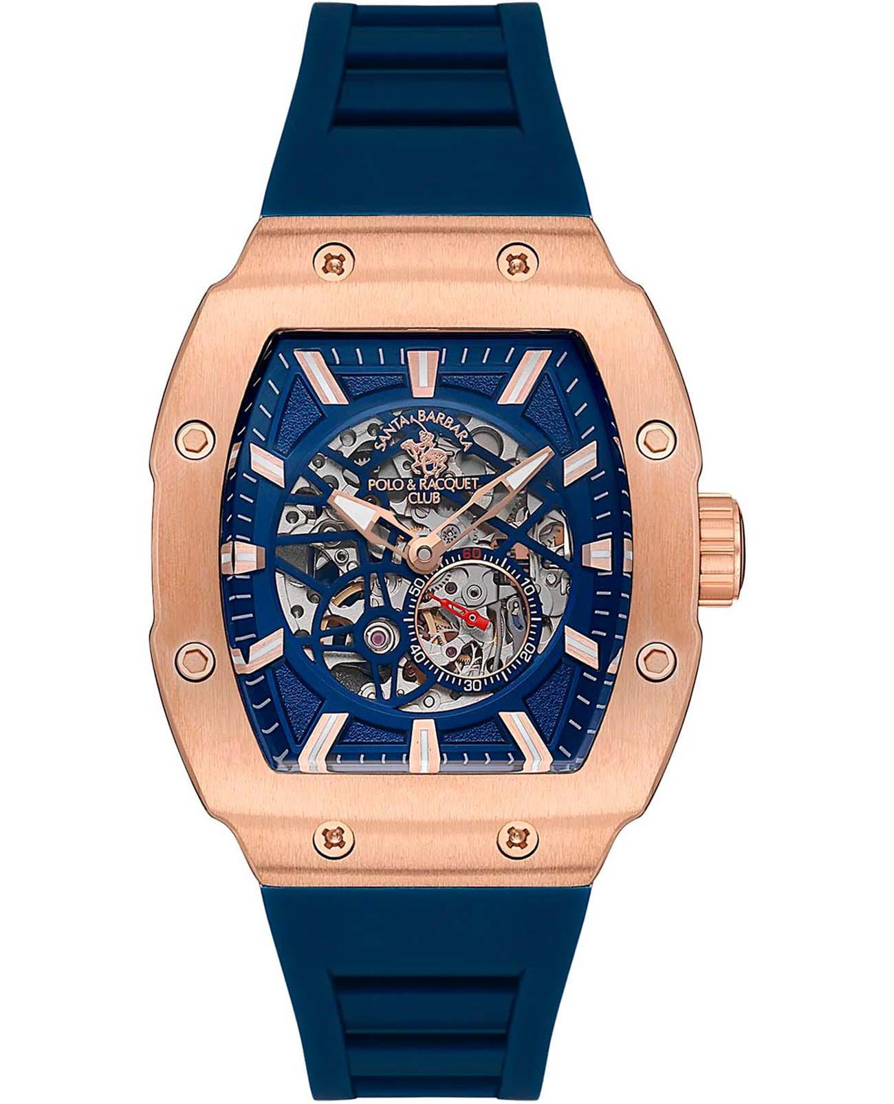 Мужские механические часы с автоподзаводом Santa Barbara Polo & Racquet Club Luxury SB.1.10549-4 — это стильный и функциональный аксессуар для современного джентльмена. Изысканный корпус из стали 316L с IP-покрытиемIP-покрытиеМетод ионного напыления. Демонстрирует повышенную устойчивость к истиранию, окислению и химическим веществам. Под воздействием высокого давления и температуры около 1500°C молекулы металла надёжно соединяются с частицами корпуса часов. диаметром 42.3 мм. Изящный скелетонизированный циферблат украшен фирменным логотипом, с метками. Накладные лаконичные метки и стрелки с люминесцентным покрытиемЛюминесцентное покрытиеПозволяет считывать показания времени в темноте. Производители наносят на стрелки, часовые индексы, безель или поверхность циферблата светонакопительный состав, дающий холодное свечение., обеспечивающим хорошую читаемость в темноте. Циферблат защищён минеральным стекломМинеральное стеклоМинеральное стекло представляет собой искусственно выращенный минерал кварца. Такое стекло отличается особой устойчивостью к повреждениям и царапинам. Уступает по некоторым качествам сапфировому стеклу., устойчивым к царапинам и механическим повреждениям. Секундная стрелка вынесена на отдельный циферблат. Надежный силиконовый ремешок на стандартной застёжке обеспечивает комфортное и безопасное ношение. Водонепроницаемость 50 м позволяет использовать часы в повседневных условиях. Идеальный выбор для тех, кто ценит элегантность, точность и надёжность.