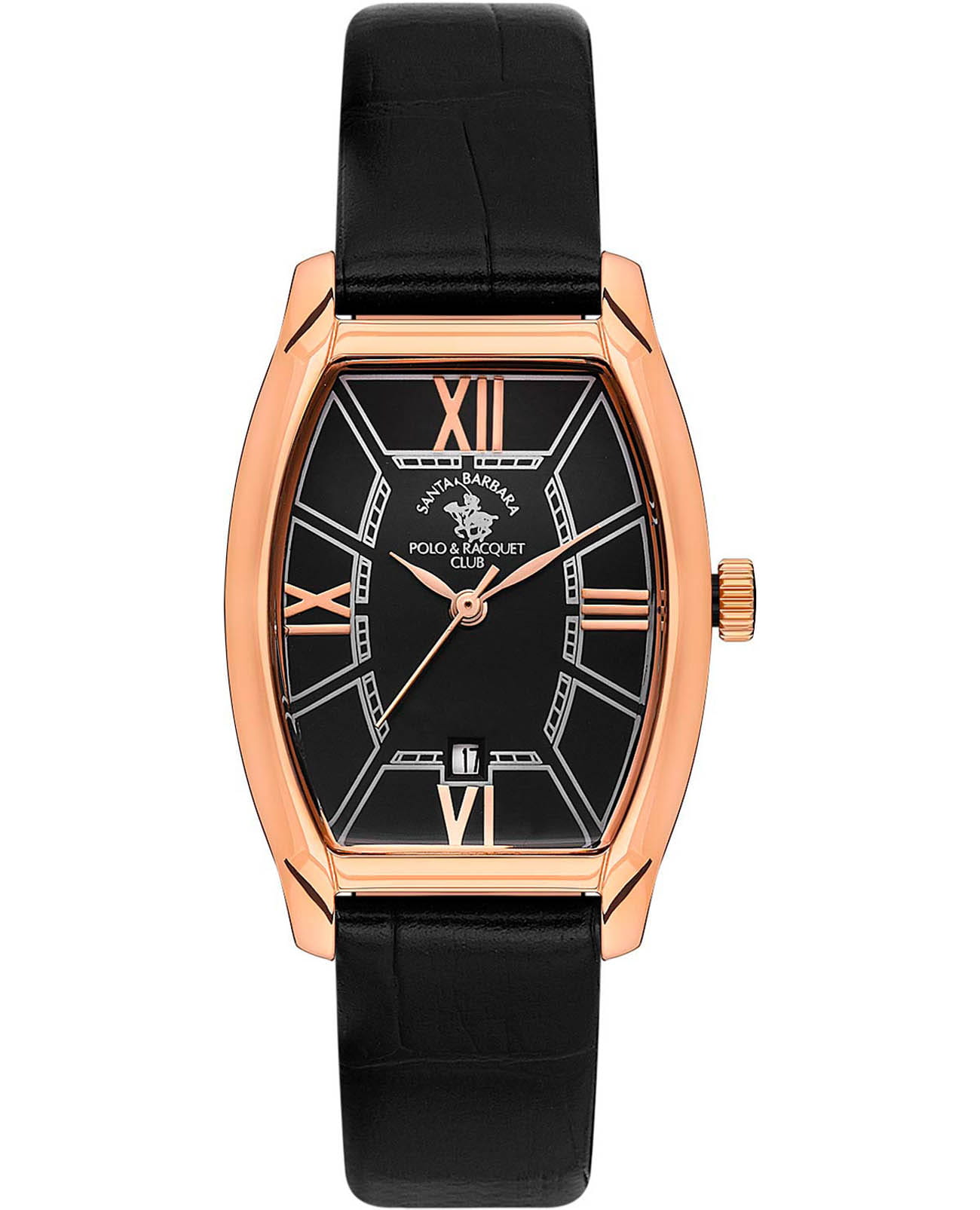 Женские кварцевые часы Santa Barbara Polo & Racquet Club Unique SB.1.10558-5 — это стильный аксессуар, подчеркивающий индивидуальность. Изысканный корпус диаметром 26 мм выполнен из нержавеющей стали 316L с розовым IP-покрытиемIP-покрытиеМетод ионного напыления. Демонстрирует повышенную устойчивость к истиранию, окислению и химическим веществам. Под воздействием высокого давления и температуры около 1500°C молекулы металла надёжно соединяются с частицами корпуса часов.. Изящный циферблат выполнен по технологии Sunray (солнечные лучи), украшен фирменным логотипом, а также накладными метками в виде римских цифр. Защиту циферблата обеспечивает минеральное стеклоМинеральное стеклоМинеральное стекло представляет собой искусственно выращенный минерал кварца. Такое стекло отличается особой устойчивостью к повреждениям и царапинам. Уступает по некоторым качествам сапфировому стеклу., устойчивое к мелким механическим повреждениям. Окошко даты находится в положении 6 часов. Часы оснащены надежным и стильным кожаным ремешком со стандартной застежкой, обеспечивающим комфортное и безопасное ношение. Водонепроницаемость 50 м позволяет использовать часы в повседневных условиях. Идеальный выбор для тех, кто ценит элегантный дизайн и качество.