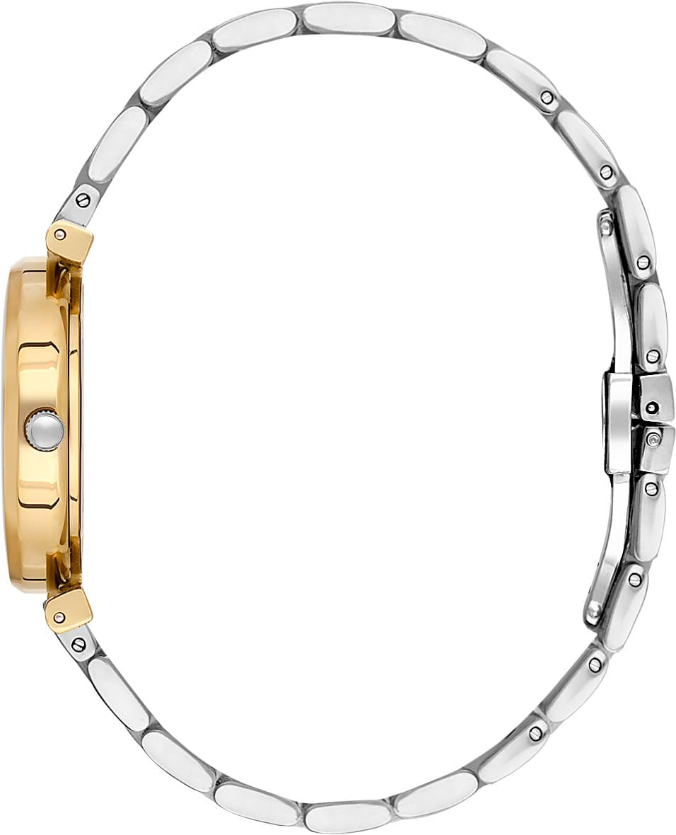 Браслет с частичным PVD-покрытиемPVDУльтратонкое покрытие наносится в технике вакуумного напыления, сочетает в себе нитрид титана особой прочности со слоем золота или оксида хрома. Несёт в себе декоративную или защитную функцию. оснащён надёжной застёжкой «бабочка»Застёжка "бабочка"Такой вид застёжки дополняется предохранителями, помогающими избежать случайного раскрытия браслета. Обладают изящным исполнением. , которая обеспечивает удобство посадки и сохраняет цельность внешнего вида.