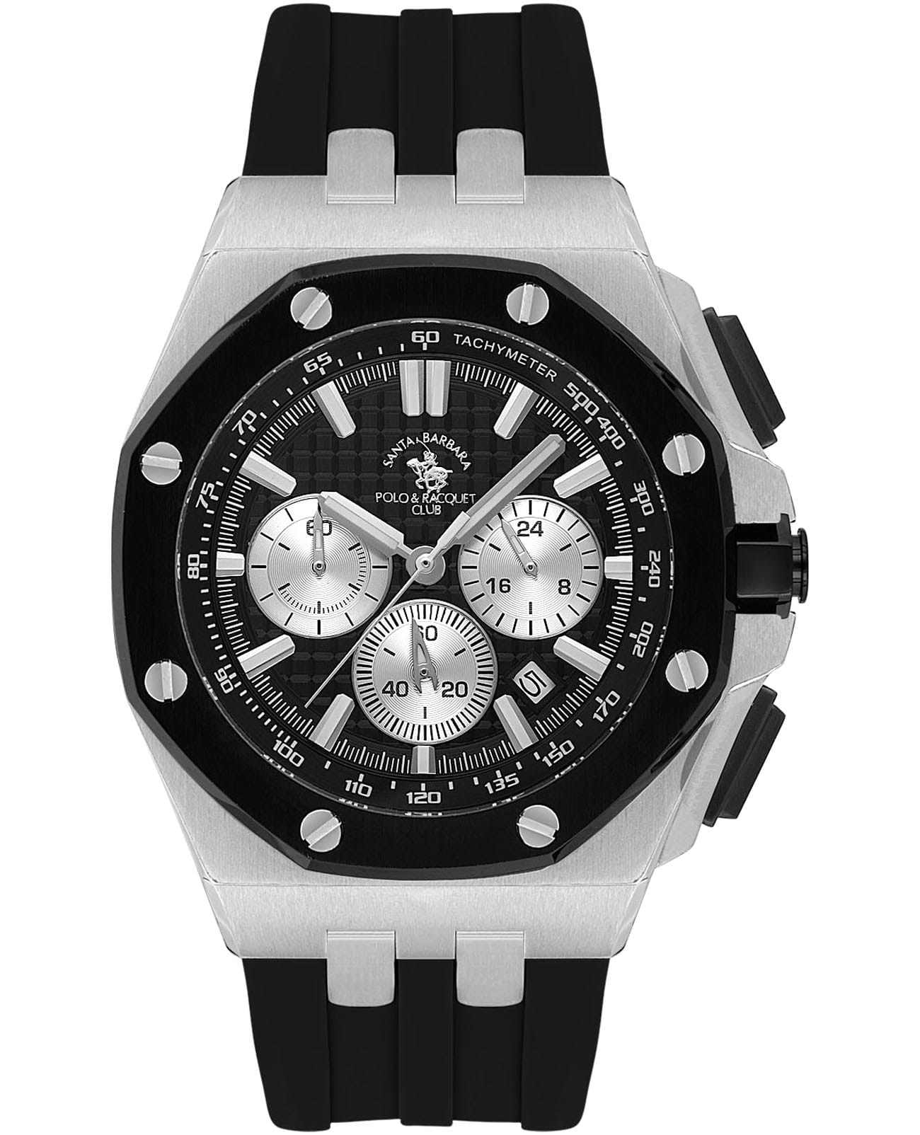 Мужские кварцевые часы-хронографХронографФункция позволяет измерять отрезки времени с особой точностью: часы, минуты, секунды. Верным признаком хронографа является наличие на циферблате 3 дополнительных окошек-счётчиков. с секундомеромСекундомерСекундоме́р — прибор, способный измерять интервалы времени с точностью до долей секунды. Santa Barbara Polo & Racquet Club SB.1.10601-1 — воплощение элегантности и технического совершенства. Корпус из нержавеющей стали, диаметром 44,5 мм, что делает их устойчивыми к внешним воздействиям и придает благородный вид. Стрелки и метки с люминесцентным покрытиемЛюминесцентное покрытиеПозволяет считывать показания времени в темноте. Производители наносят на стрелки, часовые индексы, безель или поверхность циферблата светонакопительный состав, дающий холодное свечение., обеспечивающим хорошую читаемость в темноте. Неподвижный безельБезельВнешний ободок, закрепляющий стекло. В спортивных часах так называется поворотное кольцо с делениями на циферблате, выполняет роль таймера – замеряет отрезки времени на шкале. Неподвижный безель – элемент декора. Однонаправленно вращающийся безель на дайверских часах позволяет фиксировать моменты погружения и выныривания на поверхность. с IP-покрытиемIP-покрытиеМетод ионного напыления. Демонстрирует повышенную устойчивость к истиранию, окислению и химическим веществам. Под воздействием высокого давления и температуры около 1500°C молекулы металла надёжно соединяются с частицами корпуса часов. черного цвета. Циферблат защищён минеральным стекломМинеральное стеклоМинеральное стекло представляет собой искусственно выращенный минерал кварца. Такое стекло отличается особой устойчивостью к повреждениям и царапинам. Уступает по некоторым качествам сапфировому стеклу. устойчивое к царапинам и механическим повреждениям. Окошко даты находится в положении между отметками 4 и 5 часов, тахиметрТахиметрРазмеченная шкала, располагается на ободке или безеле часов. Тахиметр позволяет рассчитать скорость на определённом участке пути, расстояние измеряется в километрах или милях. по внешнему краю. Силиконовый ремешок на стандартной застёжке обеспечивает комфортное и безопасное ношение. Водонепроницаемость 50 метров позволит защитить корпус от случайных брызг или капель дождя. Идеальный выбор для тех, кто ценит элегантный дизайн и качество.