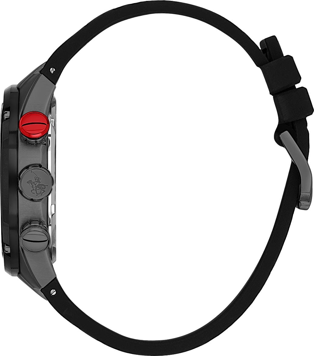 Мужские кварцевые часы-хронографХронографФункция позволяет измерять отрезки времени с особой точностью: часы, минуты, секунды. Верным признаком хронографа является наличие на циферблате 3 дополнительных окошек-счётчиков. с секундомеромСекундомерСекундоме́р — прибор, способный измерять интервалы времени с точностью до долей секунды. Santa Barbara Polo & Racquet Club SB.3.10001-4 — воплощение элегантности и технического совершенства. Корпус из нержавеющей стали с IP-покрытиемIP-покрытиеМетод ионного напыления. Демонстрирует повышенную устойчивость к истиранию, окислению и химическим веществам. Под воздействием высокого давления и температуры около 1500°C молекулы металла надёжно соединяются с частицами корпуса часов. серого цвета, диаметром 45 мм, что делает их устойчивыми к внешним воздействиям и придает благородный вид. Стрелки и метки с люминесцентным покрытиемЛюминесцентное покрытиеПозволяет считывать показания времени в темноте. Производители наносят на стрелки, часовые индексы, безель или поверхность циферблата светонакопительный состав, дающий холодное свечение., обеспечивающим хорошую читаемость в темноте. Неподвижный безельБезельВнешний ободок, закрепляющий стекло. В спортивных часах так называется поворотное кольцо с делениями на циферблате, выполняет роль таймера – замеряет отрезки времени на шкале. Неподвижный безель – элемент декора. Однонаправленно вращающийся безель на дайверских часах позволяет фиксировать моменты погружения и выныривания на поверхность. с IP-покрытиемIP-покрытиеМетод ионного напыления. Демонстрирует повышенную устойчивость к истиранию, окислению и химическим веществам. Под воздействием высокого давления и температуры около 1500°C молекулы металла надёжно соединяются с частицами корпуса часов. черного цвета. Циферблат защищён минеральным стекломМинеральное стеклоМинеральное стекло представляет собой искусственно выращенный минерал кварца. Такое стекло отличается особой устойчивостью к повреждениям и царапинам. Уступает по некоторым качествам сапфировому стеклу. устойчивое к царапинам и механическим повреждениям. Окошко даты находится в положении 4 часа, тахиметрТахиметрРазмеченная шкала, располагается на ободке или безеле часов. Тахиметр позволяет рассчитать скорость на определённом участке пути, расстояние измеряется в километрах или милях. по внешнему краю. Кожаный ремешок на стандартной застёжке обеспечивает комфортное и безопасное ношение. Водонепроницаемость 100 метров позволит плавать, нырять и заниматься другими водными видами спорта. Идеальный выбор для тех, кто ценит элегантный дизайн и качество.