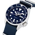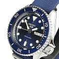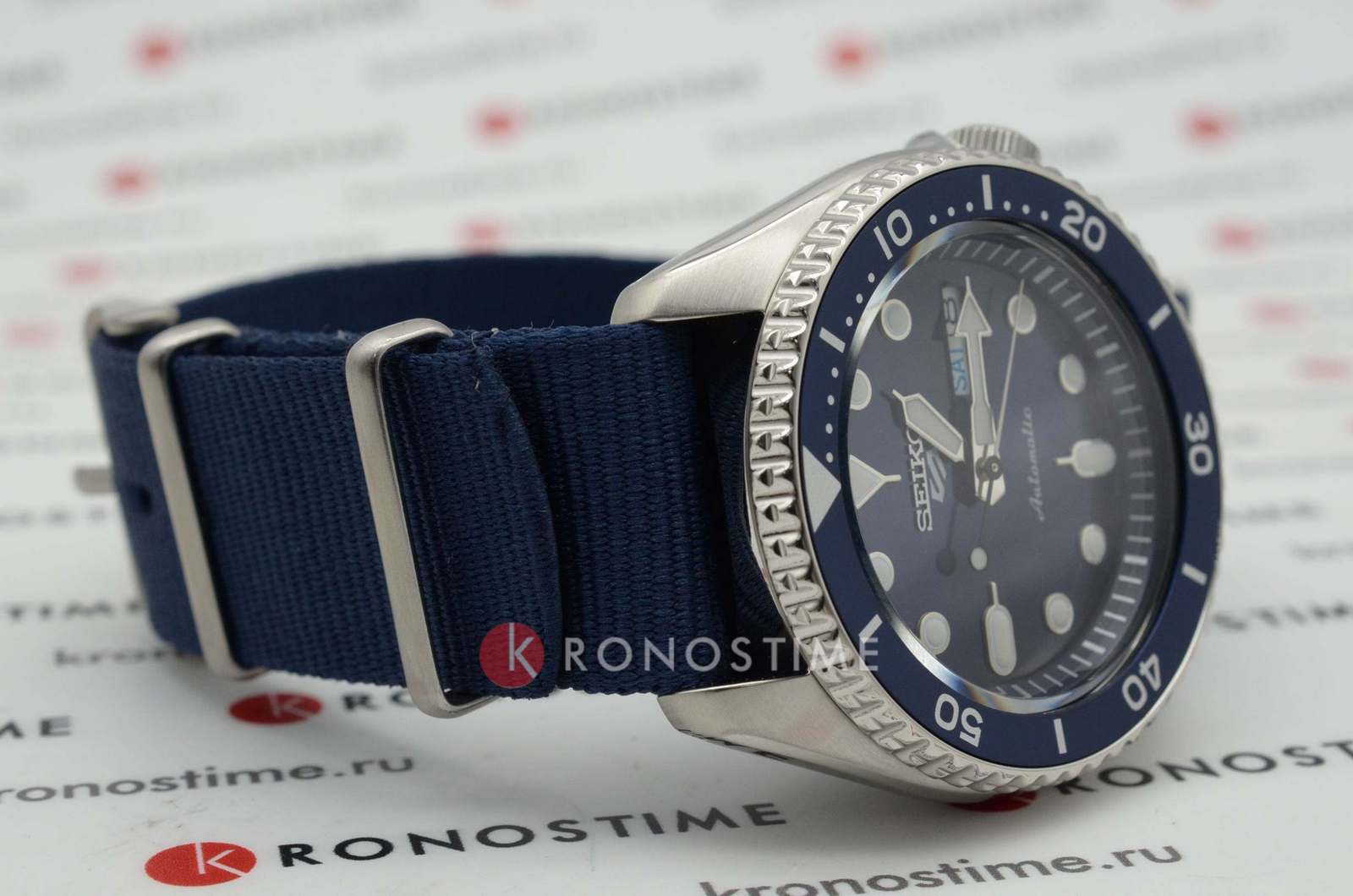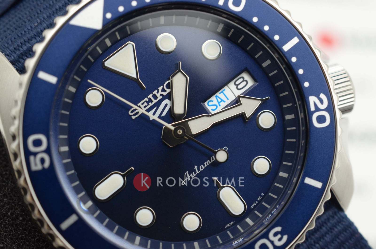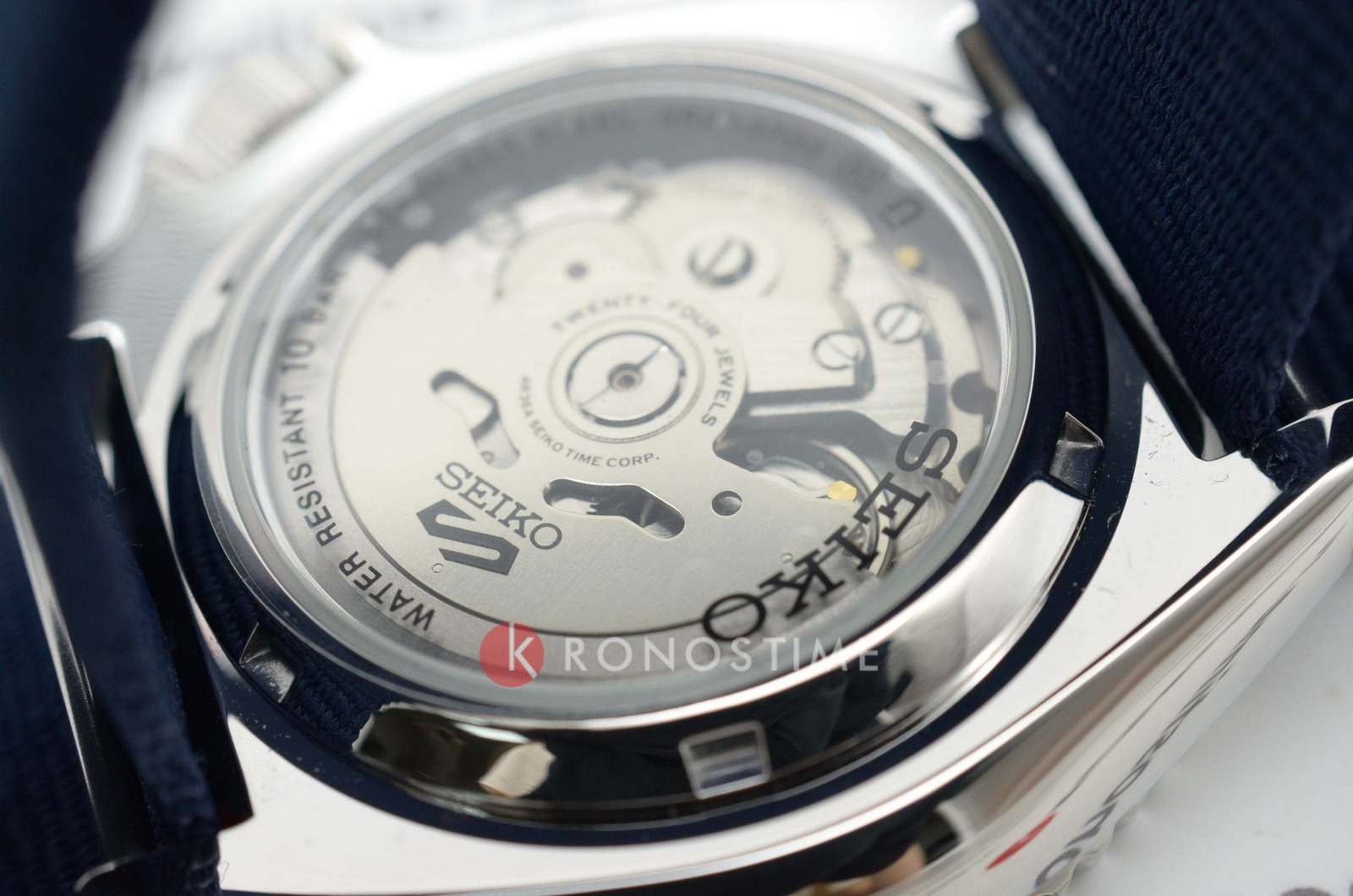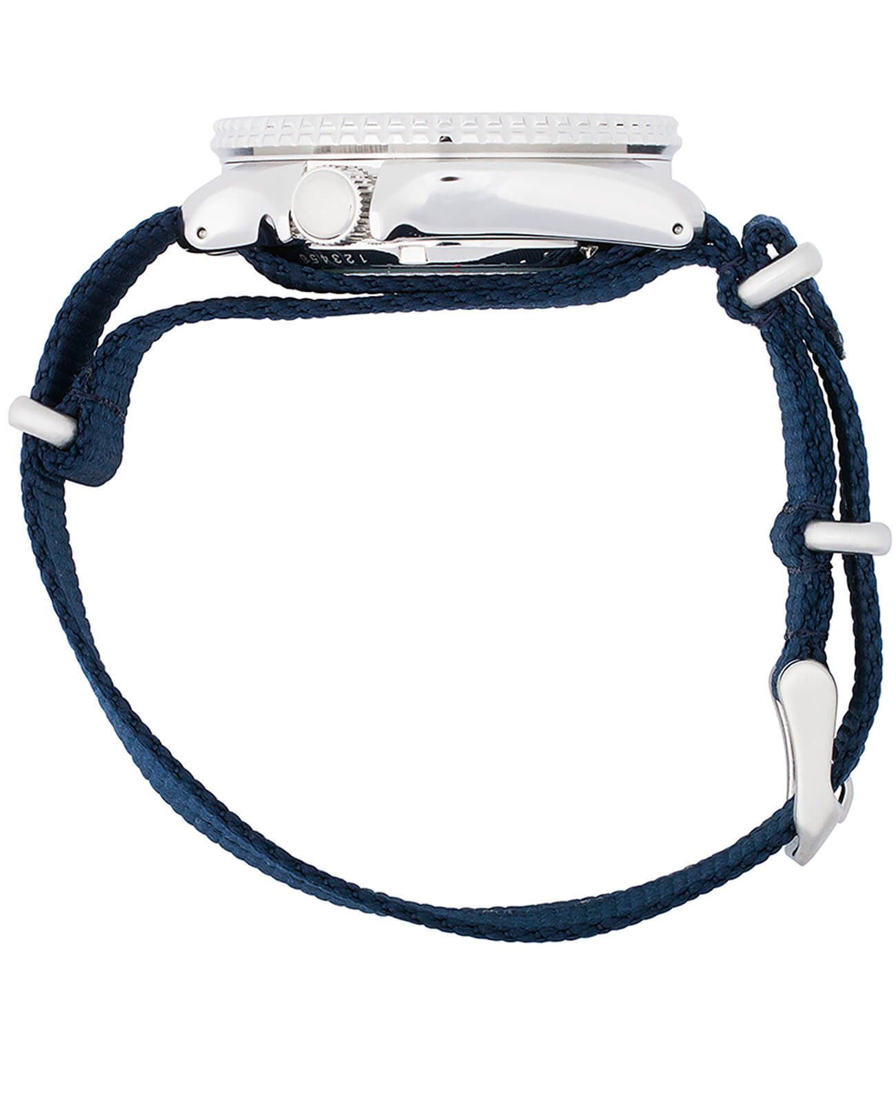 Наручные часы с автоматической системой завода заводятся от движений руки носителя. Японский механизм Seiko 4R36 сохраняет запас хода на 41 час, его работа просматривается через прозрачную заднюю крышку. Стрелки и метки имеют люминесцентное покрытиеЛюминесцентное покрытиеПозволяет считывать показания времени в темноте. Производители наносят на стрелки, часовые индексы, безель или поверхность циферблата светонакопительный состав, дающий холодное свечение., ремешок сделан из нейлона. Есть функция индикации даты и дня недели.