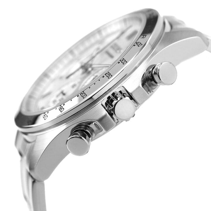 Мужские кварцевые часы Seiko SBTR009 из коллекции Spirit — это сочетание точности, функциональности и современного дизайна. Часы оснащены японским механизмом калибра 8T63 с функцией хронографаХронографФункция позволяет измерять отрезки времени с особой точностью: часы, минуты, секунды. Верным признаком хронографа является наличие на циферблате 3 дополнительных окошек-счётчиков., включающей секундомер с точностью 1/5 секунды и временем измерения до 1 часа, отображаемый центральной стрелкой. Также реализована функция тахиметраТахиметрРазмеченная шкала, располагается на ободке или безеле часов. Тахиметр позволяет рассчитать скорость на определённом участке пути, расстояние измеряется в километрах или милях.. Центральные часовая и минутная стрелки дополнены вынесенной секундной стрелкой на отдельном циферблате, окошко даты расположено между отметками 4 и 5 часов. Циферблат серебристого цвета оформлен штриховыми метками, стрелки и метки покрыты люминесцентным покрытиемЛюминесцентное покрытиеПозволяет считывать показания времени в темноте. Производители наносят на стрелки, часовые индексы, безель или поверхность циферблата светонакопительный состав, дающий холодное свечение. LumiBrite, обеспечивающим хорошую читаемость в темноте. Корпус выполнен из нержавеющей стали и защищён прочным минеральным стеклом Hardlex, устойчивым к царапинам. Браслет из нержавеющей стали фиксируется на раскладной застёжкеРаскладная застёжкаТакой тип застёжки используется только на браслетах из металла. Она никогда не раскрывается полностью, происходит разделение на 2 и более частей. Раскладывающая застёжка снизит вероятность потери часов к минимуму.. Водонепроницаемость 100 м позволяет использовать часы для плавания, ныряния и других водных видов спорта. Модель подходит как для повседневного, так и для делового образа.