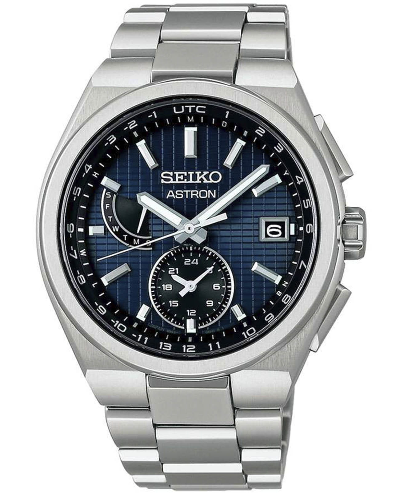 Мужские кварцевые часы Seiko — это высокотехнологичный аксессуар с солнечным питанием и радиосинхронизацией. Корпус диаметром 41 мм и толщиной 11 мм выполнен из гипоаллергенного титана. Циферблат синего цвета оформлен индексами и стрелками. Окошко даты расположено в положении 3 часов. Стрелки и метки с люминесцентным покрытиемЛюминесцентное покрытиеПозволяет считывать показания времени в темноте. Производители наносят на стрелки, часовые индексы, безель или поверхность циферблата светонакопительный состав, дающий холодное свечение. LumiBrite, обеспечивающим хорошую читаемость в темноте. Циферблат защищён сапфировым стекломСапфировое стеклоПрочный и надёжный материал из кристалла сапфира синтетического происхождения, характеризующийся особой твёрдостью и устойчивостью к царапинам и повреждениям. с антибликовым покрытиемАнтибликовое покрытиеСлой оксида металла в 0,13-0,3 микрон, благодаря которому стекло часов не бликует и не отражает свет. Антибликовое покрытие уменьшает отражение света в 10 раз, обеспечивая отличную читаемость показателей циферблата. для максимальной прозрачности. Механизм — кварцевый калибр 8B63 с технологией Tough SolarTough SolarТехнология основана на подзарядке аккумулятора от источника солнечного света, специальная панель улавливает солнечные лучи и преобразует их в энергию для работы часов. Достаточно пары минут нахождения на солнце для функционирования часов в течении суток., обеспечивающей работу до 6 месяцев в обычном режиме и до 2 лет в режиме энергосбережения. Часы поддерживают автоматическую радиокоррекцию времени, имеют функцию мирового времениМировое время Полезное часовое усложнение, отображающее время в основных городах и известных областях по всему миру, оно связано с часовыми поясами, удобно для путешественников и бизнесменов. , вечный календарьВечный календарьКлассическое часовое усложнение, представляющее собой календарь, рассчитанный на несколько лет вперёд (стандартно – до 2099 года). Определяет текущую дату, день недели, месяц. (до 2100 года), 12/24-часовой формат времени и устойчивы к магнитным полям. Часы оснащены титановым браслетом с раскладной застёжкойРаскладная застёжкаТакой тип застёжки используется только на браслетах из металла. Она никогда не раскрывается полностью, происходит разделение на 2 и более частей. Раскладывающая застёжка снизит вероятность потери часов к минимуму.. Водонепроницаемость 100 м позволяет использовать часы для плавания и повседневного ношения. Идеальный выбор для тех, кто ценит точность, лёгкость и передовые технологии.