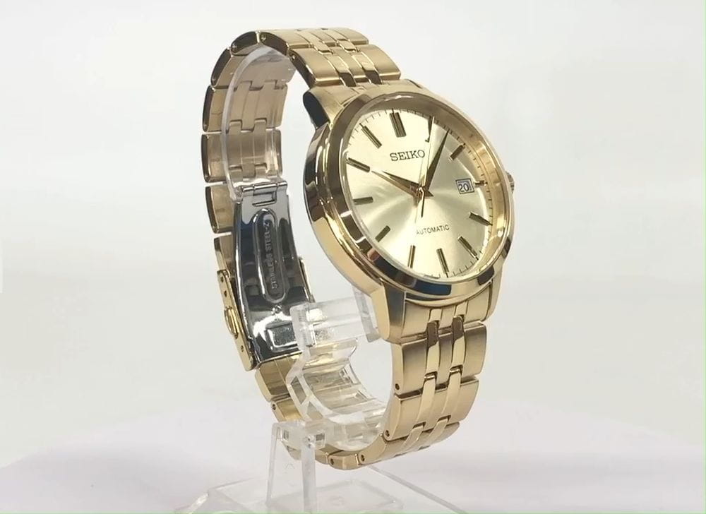 Seiko SCVE062 — сдержанная и надёжная модель, сочетающая классический дизайн с ежедневной практичностью. Корпус из нержавеющей стали с PVD-покрытиемPVDУльтратонкое покрытие наносится в технике вакуумного напыления, сочетает в себе нитрид титана особой прочности со слоем золота или оксида хрома. Несёт в себе декоративную или защитную функцию. диаметром 41,2 мм аккуратно полирован и отделан с обтекаемыми гранями, создавая элегантный и универсальный образ . Циферблат украшен минималистичными часовыми метками и тонкими стрелками из стали. Окошко даты на отметке «3 часа» придаёт функциональности, сохраняя при этом визуальную чистоту. Покрытие циферблата — прочное минеральное стеклоМинеральное стеклоМинеральное стекло представляет собой искусственно выращенный минерал кварца. Такое стекло отличается особой устойчивостью к повреждениям и царапинам. Уступает по некоторым качествам сапфировому стеклу., устойчивое к царапинам и нежелательным воздействиям . Модель оснащена автоматическим калибром 4R35 с ручным подзаводом, 23 камнями, функцией остановки секундной стрелки и запасом хода до примерно 41 часа . Прозрачная задняя крышка позволяет наблюдать за механизмом — тонкой и гармоничной работой его компонентов . Браслет из нержавеющей стали с PVD-покрытиемPVDУльтратонкое покрытие наносится в технике вакуумного напыления, сочетает в себе нитрид титана особой прочности со слоем золота или оксида хрома. Несёт в себе декоративную или защитную функцию. завершён удобной раскладной застёжкойРаскладная застёжкаТакой тип застёжки используется только на браслетах из металла. Она никогда не раскрывается полностью, происходит разделение на 2 и более частей. Раскладывающая застёжка снизит вероятность потери часов к минимуму. с кнопочной фиксацией, обеспечивающей надёжное ношение и лёгкость при надевании . Водозащита до 100 м (10 бар) позволяет спокойно эксплуатировать часы при рукотворных бытовых или водных нагрузках . Элегантная SCVE062 — образец сдержанной эстетики, инженерной аккуратности и ежедневной надёжности. Ведь в ней сочетаются минимализм, японская точность и продуманная функциональность.