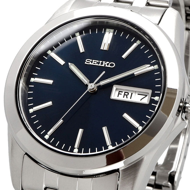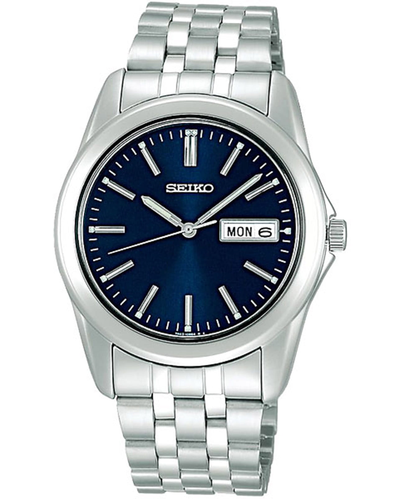 Унисекс кварцевые часы Seiko — это надёжный и универсальный аксессуар. Корпус размером 38 мм и толщиной 8 мм выполнен из нержавеющей стали 316L. Циферблат оформлен индексами и стрелками, включая центральную секундную стрелку. Окошки даты и дня недели расположены в положении 3 часов. Стрелки и метки с люминесцентным покрытиемЛюминесцентное покрытиеПозволяет считывать показания времени в темноте. Производители наносят на стрелки, часовые индексы, безель или поверхность циферблата светонакопительный состав, дающий холодное свечение., обеспечивающим хорошую читаемость в темноте. Циферблат защищён прочным закалённым минеральным стеклом Hardlex. Механизм — японское кварцевое движение калибра 7N43 с высокой точностью хода (±10–15 сек. в месяц). Часы оснащены стальным браслетом на раскладной застёжкеРаскладная застёжкаТакой тип застёжки используется только на браслетах из металла. Она никогда не раскрывается полностью, происходит разделение на 2 и более частей. Раскладывающая застёжка снизит вероятность потери часов к минимуму. с фиксатором. Водонепроницаемость 30 м позволяет использовать часы в повседневных условиях. Идеальный выбор для тех, кто ценит японское качество и классический дизайн.