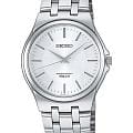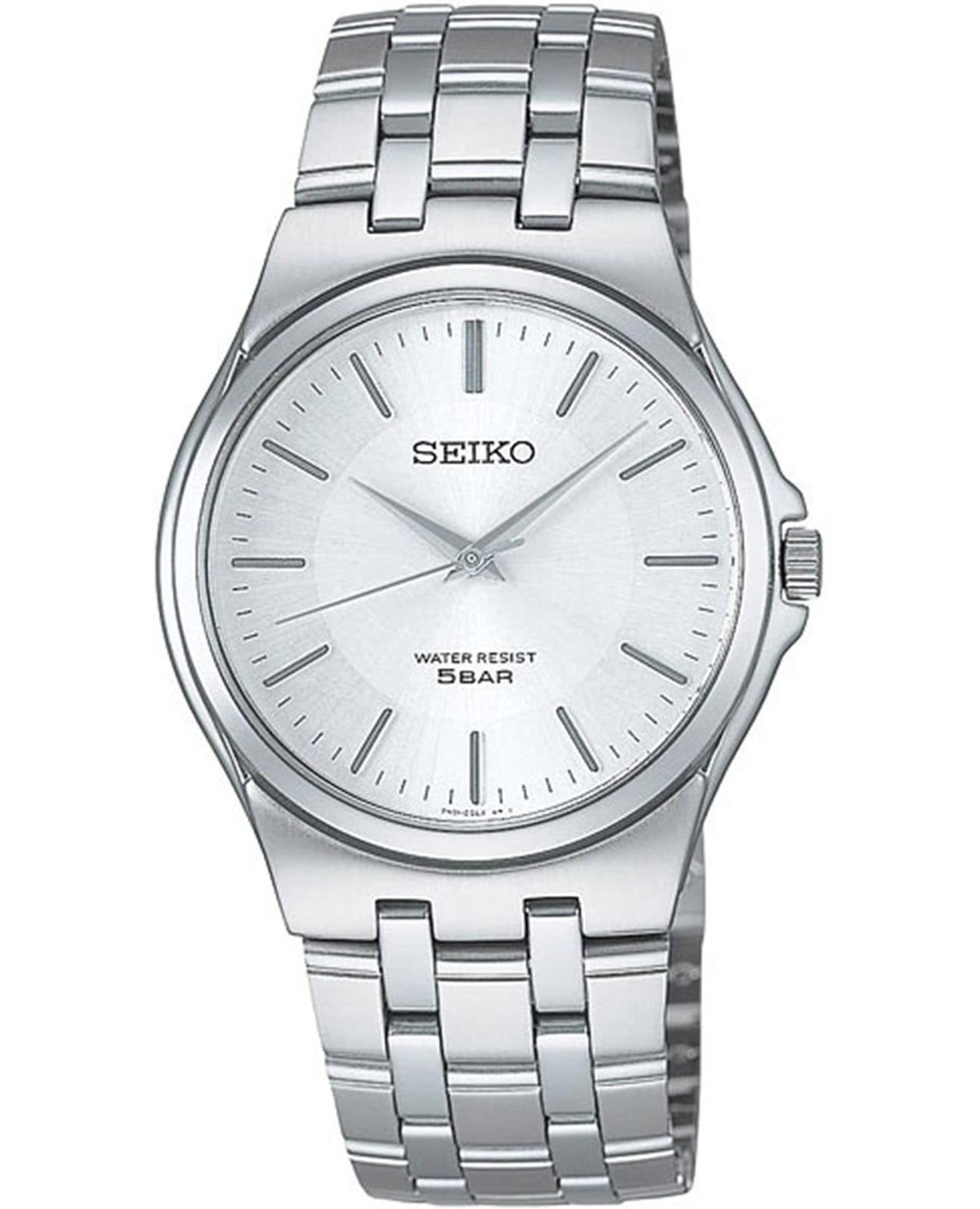 Женские кварцевые часы Seiko — это надёжный и универсальный аксессуар. Корпус диаметром 34,7 мм и толщиной 7,1 мм выполнен из нержавеющей стали 316L. Циферблат белого цвета оформлен индексами и стрелками, включая центральную секундную стрелку. Циферблат защищён прочным закалённым минеральным стеклом Hardlex минеральным стекломМинеральное стеклоМинеральное стекло представляет собой искусственно выращенный минерал кварца. Такое стекло отличается особой устойчивостью к повреждениям и царапинам. Уступает по некоторым качествам сапфировому стеклу.. Механизм — японское кварцевое движение калибра 7N01 с высокой точностью хода (±10–15 сек. в месяц). Заводная головка с защитой обеспечивает повышенную надёжность. Часы оснащены стальным браслетом на раскладной застёжкеРаскладная застёжкаТакой тип застёжки используется только на браслетах из металла. Она никогда не раскрывается полностью, происходит разделение на 2 и более частей. Раскладывающая застёжка снизит вероятность потери часов к минимуму. с фиксатором. Водонепроницаемость 50 м позволяет использовать часы в повседневных условиях. Идеальный выбор для тех, кто ценит японское качество и классический дизайн.