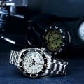 Мужские японские механические часы с автоподзаводом Seiko Prospex SLA077J1 готовы покорить сердца истинных ценителей качественных аксессуаров. Оснащенные сапфировым стекломСапфировое стеклоПрочный и надёжный материал из кристалла сапфира синтетического происхождения, характеризующийся особой твёрдостью и устойчивостью к царапинам и повреждениям., они обеспечивают надежную защиту циферблата от царапин и других повреждений, что делает их отличным выбором для активного использования. Дизайн часов включает поворотный безельБезельВнешний ободок, закрепляющий стекло. В спортивных часах так называется поворотное кольцо с делениями на циферблате, выполняет роль таймера – замеряет отрезки времени на шкале. Неподвижный безель – элемент декора. Однонаправленно вращающийся безель на дайверских часах позволяет фиксировать моменты погружения и выныривания на поверхность., выполненный из нержавеющей стали, который добавляет функциональности и элегантности. Корпус и браслет изготовлены из высококачественной стали, что гарантирует долговечность и комфорт, а также делает эти часы подходящими как для повседневного ношения, так и для особых случаев. Удобное окошко даты, расположенное в положении 3 часа, придаёт дополнительную практичность в использовании. Стрелки и метки времени имеют люминесцентное покрытиеЛюминесцентное покрытиеПозволяет считывать показания времени в темноте. Производители наносят на стрелки, часовые индексы, безель или поверхность циферблата светонакопительный состав, дающий холодное свечение., обеспечивая отличную видимость в темноте и позволяя легко считывать время в любых условиях освещения. С классом водозащиты в 300 метров, Seiko Prospex SLA077J1 идеально подходят для плавания, ныряния и активных водных видов спорта. Стальной браслет на раскладной застёжкеРаскладная застёжкаТакой тип застёжки используется только на браслетах из металла. Она никогда не раскрывается полностью, происходит разделение на 2 и более частей. Раскладывающая застёжка снизит вероятность потери часов к минимуму. обеспечивает надежную фиксацию и комфорт при ношении. Эти часы — возможность объединить стиль и функциональность, что делает их отличным выбором как для любителей приключений, так и для ценителей утонченного дизайна.
