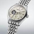 Механические часы Seiko Presage Classic SPB469 — это гармоничное сочетание японского мастерства, технологичности и эстетики. Модель вдохновлена цветами и текстурами традиционных японских ремёсел, что отражается как в дизайне циферблата, так и в общей стилистике часов. Часы оснащены калибром 6R5J — надёжным механизмом с автоподзаводом и возможностью ручной подзаводки. Механизм работает на частоте 21 600 полуколебаний в час, имеет 24 драгоценных камня и обеспечивает запас хода до 72 часов. Также реализована функция стоп-секунды для точной установки времени и защита от магнитных полей до 4800 А/м. Через прозрачное окошко на циферблате можно наблюдать за работой механизма, а также отслеживать время в двух форматах — 12-часовом и 24-часовом. Циферблат бежевого цвета выполнен в стиле «широ-иро» — в оттенке неотбелённого шелка, который при разном освещении играет глубокими переливами. Его поверхность украшена тонкой текстурой, создающей ощущение благородства и изысканности. Метки выполнены в виде аккуратных штрихов, а информация о времени представлена центральными стрелками. Защиту циферблата обеспечивает сапфировое стеклоСапфировое стеклоПрочный и надёжный материал из кристалла сапфира синтетического происхождения, характеризующийся особой твёрдостью и устойчивостью к царапинам и повреждениям. выпуклой формы с антибликовым покрытием с обеих сторон. Корпус изготовлен из нержавеющей стали, а задняя крышка — завинчивающаяся и прозрачная, что позволяет рассмотреть детали работы механизма. Браслет выполнен из стали и оснащён трёхсгибной раскладной застёжкойРаскладная застёжкаТакой тип застёжки используется только на браслетах из металла. Она никогда не раскрывается полностью, происходит разделение на 2 и более частей. Раскладывающая застёжка снизит вероятность потери часов к минимуму., обеспечивающей комфорт и уверенную фиксацию на запястье. Часы водонепроницаемы до 100 метров , что позволяет использовать их при плавании или занятиях водными видами спорта. Эти часы станут универсальным аксессуаром для тех, кто ценит сочетание культурного наследия, технологий и эстетики — идеальный выбор для повседневной носки и торжественных случаев.