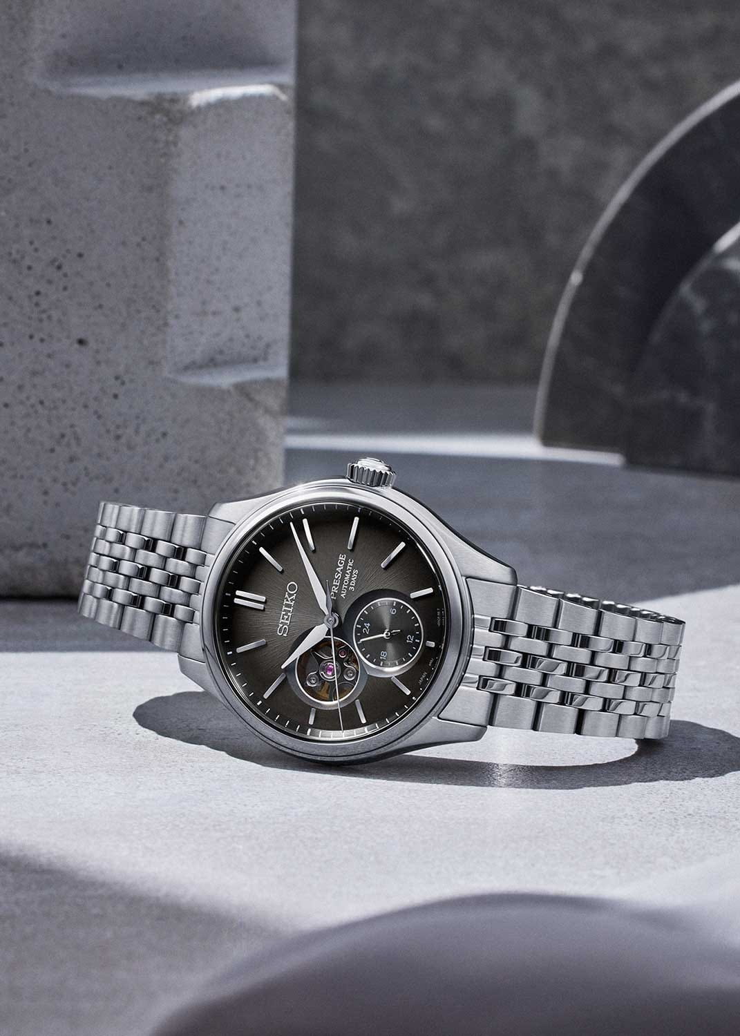 Механические часы Seiko Presage Classic SPB471 — это сочетание японского мастерства, технологичности и эстетики. Серия вдохновлена цветами и текстурами традиционных японских ремёсел, что нашло своё отражение в изысканном дизайне и высокой функциональности модели. Часы оснащены калибром 6R5J — надёжным механизмом с автоподзаводом и возможностью ручной подзаводки. Механизм работает на частоте 21 600 полуколебаний в час, имеет 24 драгоценных камня и обеспечивает запас хода до 72 часов. Также реализована функция стоп-секунды для точной установки времени и защита от магнитных полей до 4800 А/м. Через прозрачное окошко на циферблате можно наблюдать за работой механизма, а также отслеживать время в двух форматах — 12-часовом и 24-часовом. Циферблат чёрного цвета выполнен в стиле «широ-иро» — в оттенке неотбелённого шелка, который при разном освещении играет глубокими переливами. Его поверхность украшена тонкой текстурой, создающей ощущение благородства и изысканности. Метки выполнены в виде аккуратных штрихов, а центральные стрелки обеспечивают чёткость и лёгкость считывания информации. Защиту циферблата обеспечивает сапфировое стеклоСапфировое стеклоПрочный и надёжный материал из кристалла сапфира синтетического происхождения, характеризующийся особой твёрдостью и устойчивостью к царапинам и повреждениям. выпуклой формы с антибликовым покрытием с обеих сторон. Корпус изготовлен из нержавеющей стали, а задняя крышка — завинчивающаяся и прозрачная, что позволяет рассмотреть детали работы механизма. Браслет выполнен из стали и оснащён трёхсгибной раскладной застёжкойРаскладная застёжкаТакой тип застёжки используется только на браслетах из металла. Она никогда не раскрывается полностью, происходит разделение на 2 и более частей. Раскладывающая застёжка снизит вероятность потери часов к минимуму., обеспечивающей комфорт и уверенную фиксацию на запястье. Часы водонепроницаемы до 100 метров , что позволяет использовать их при плавании или занятиях водными видами спорта без глубокого погружения. Эти часы станут универсальным аксессуаром для тех, кто ценит сочетание культурного наследия, технологий и эстетики — идеальный выбор для повседневной носки и торжественных случаев.