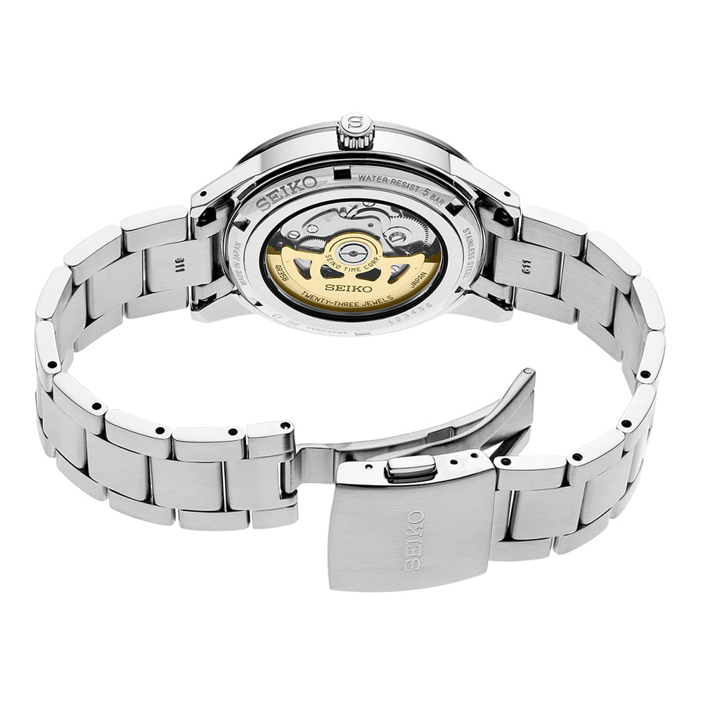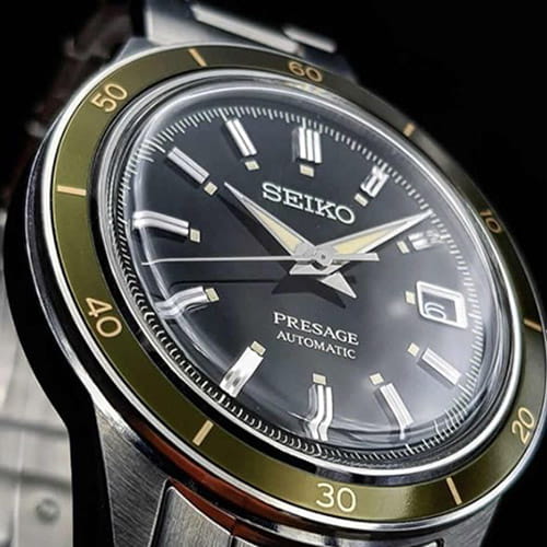 Модель SRPG07J1 из коллекции Seiko Presage Style 60's сочетает винтажный дизайн с современными технологиями. Корпус и браслет выполнены из нержавеющей стали. Надёжный автоматический механизм Seiko 4R35 обеспечивает до 41 часа запаса хода. Циферблат защищён минеральным стекломМинеральное стеклоМинеральное стекло представляет собой искусственно выращенный минерал кварца. Такое стекло отличается особой устойчивостью к повреждениям и царапинам. Уступает по некоторым качествам сапфировому стеклу.. Безель с PVD-покрытиемPVDУльтратонкое покрытие наносится в технике вакуумного напыления, сочетает в себе нитрид титана особой прочности со слоем золота или оксида хрома. Несёт в себе декоративную или защитную функцию. из нержавеющей стали придаёт модели элегантный вид. Установлена раскладная застёжкаРаскладная застёжкаТакой тип застёжки используется только на браслетах из металла. Она никогда не раскрывается полностью, происходит разделение на 2 и более частей. Раскладывающая застёжка снизит вероятность потери часов к минимуму. для надёжной фиксации на запястье.