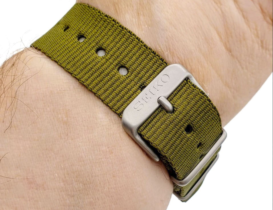 Механические часы Seiko 5 Sports Field series SRPG33K1S с автоподзаводом и возможностью ручной подзаводки оснащены калибром 4R36, в котором используется 24 драгоценных камня. Механизм обеспечивает запас хода до 41 часа и дополнен функцией стоп-секунды для точной установки времени, а также отображением дня недели и даты. Корпус изготовлен из нержавеющей стали, а циферблат защищён минеральным стекломМинеральное стеклоМинеральное стекло представляет собой искусственно выращенный минерал кварца. Такое стекло отличается особой устойчивостью к повреждениям и царапинам. Уступает по некоторым качествам сапфировому стеклу. Hardlex с выпуклой формой, устойчивым к мелким повреждениям. Циферблат дополнен стрелками и метками с фирменным люминесцентным покрытиемЛюминесцентное покрытиеПозволяет считывать показания времени в темноте. Производители наносят на стрелки, часовые индексы, безель или поверхность циферблата светонакопительный состав, дающий холодное свечение. LumiBrite, обеспечивающим отличную читаемость даже в темноте. Часы обладают водонепроницаемостью , что соответствует защите на глубине до 100 метров, и имеют защиту от магнитных полей до 4800 А/м. Задняя крышка — завинчивающаяся и прозрачная, что позволяет рассмотреть работу механизма и подчёркивает внимание к деталям внутренней отделки. Ремешок из прочного нейлона добавляет модели лёгкости и спортивного стиля, обеспечивая комфорт при ношении. Расстояние между ушками составляет 20 мм, что делает модель совместимой с различными типами ремешков. Эти часы станут универсальным аксессуаром для тех, кто ценит сочетание технологичности, прочности и эстетики — идеальный выбор для повседневной носки и активного образа жизни.