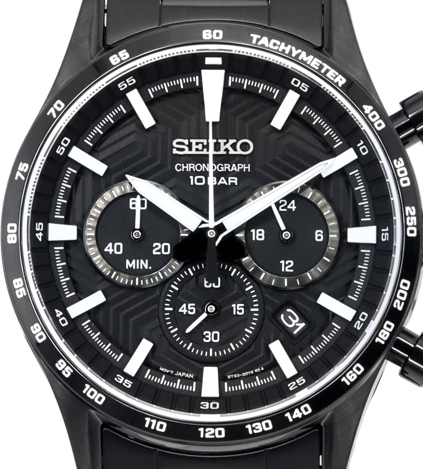 Мужские японские часы Seiko Conceptual Series Sports SSB415P1 c хронографомХронографФункция позволяет измерять отрезки времени с особой точностью: часы, минуты, секунды. Верным признаком хронографа является наличие на циферблате 3 дополнительных окошек-счётчиков., кварцевый механизм с высокой точностью. Сапфировое стеклоСапфировое стеклоПрочный и надёжный материал из кристалла сапфира синтетического происхождения, характеризующийся особой твёрдостью и устойчивостью к царапинам и повреждениям., устойчивое к появлению царапин, обладающее высокой прозрачностью. Класс водозащиты: 100 метров, позволит плавать, нырять и заниматься другими водными видами спорта. Корпус и браслет часов изготовлен из сталис PVD-покрытиемPVDУльтратонкое покрытие наносится в технике вакуумного напыления, сочетает в себе нитрид титана особой прочности со слоем золота или оксида хрома. Несёт в себе декоративную или защитную функцию.. Неподвижный безельБезельВнешний ободок, закрепляющий стекло. В спортивных часах так называется поворотное кольцо с делениями на циферблате, выполняет роль таймера – замеряет отрезки времени на шкале. Неподвижный безель – элемент декора. Однонаправленно вращающийся безель на дайверских часах позволяет фиксировать моменты погружения и выныривания на поверхность. со шкалой тахиметраТахиметрРазмеченная шкала, располагается на ободке или безеле часов. Тахиметр позволяет рассчитать скорость на определённом участке пути, расстояние измеряется в километрах или милях.. Стрелки и метки с люминесцентным покрытиемЛюминесцентное покрытиеПозволяет считывать показания времени в темноте. Производители наносят на стрелки, часовые индексы, безель или поверхность циферблата светонакопительный состав, дающий холодное свечение.. Браслет на раскладной застёжкеРаскладная застёжкаТакой тип застёжки используется только на браслетах из металла. Она никогда не раскрывается полностью, происходит разделение на 2 и более частей. Раскладывающая застёжка снизит вероятность потери часов к минимуму. с кнопками. СекундомерСекундомерСекундоме́р — прибор, способный измерять интервалы времени с точностью до долей секунды.. Окошко даты находится в положении между 4 и 5 часов.