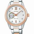 Модель Seiko SSDE010 — это утончённые женские автоматические часы с элегантным дизайном и акцентом на деталях. Корпус диаметром 34,2 мм выполнен из нержавеющей стали с PVD-покрытиемPVDУльтратонкое покрытие наносится в технике вакуумного напыления, сочетает в себе нитрид титана особой прочности со слоем золота или оксида хрома. Несёт в себе декоративную или защитную функцию., задняя крышка прозрачная, завинчивающаяся. Водозащита составляет 100 метров, обеспечивая практичность для повседневного использования. Фиксированный стальной безельБезельВнешний ободок, закрепляющий стекло. В спортивных часах так называется поворотное кольцо с делениями на циферблате, выполняет роль таймера – замеряет отрезки времени на шкале. Неподвижный безель – элемент декора. Однонаправленно вращающийся безель на дайверских часах позволяет фиксировать моменты погружения и выныривания на поверхность. подчёркивает сбалансированные пропорции корпуса. Белый циферблат оформлен в минималистичном стиле с изящным окном «open heart» на отметке 9 часов, демонстрирующим работу механизма. Метки и стрелки покрыты люминесцентным покрытиемЛюминесцентное покрытиеПозволяет считывать показания времени в темноте. Производители наносят на стрелки, часовые индексы, безель или поверхность циферблата светонакопительный состав, дающий холодное свечение. LumiBrite для читаемости в условиях слабой освещённости. Циферблат защищён минеральным стекломМинеральное стеклоМинеральное стекло представляет собой искусственно выращенный минерал кварца. Такое стекло отличается особой устойчивостью к повреждениям и царапинам. Уступает по некоторым качествам сапфировому стеклу. Hardlex, устойчивым к ударам и царапинам. Внутри установлен автоматический калибр Seiko 4R38 с ручным подзаводом, остановкой секундной стрелки и запасом хода до 41 часа. БезельБезельВнешний ободок, закрепляющий стекло. В спортивных часах так называется поворотное кольцо с делениями на циферблате, выполняет роль таймера – замеряет отрезки времени на шкале. Неподвижный безель – элемент декора. Однонаправленно вращающийся безель на дайверских часах позволяет фиксировать моменты погружения и выныривания на поверхность. с PVD-покрытиемPVDУльтратонкое покрытие наносится в технике вакуумного напыления, сочетает в себе нитрид титана особой прочности со слоем золота или оксида хрома. Несёт в себе декоративную или защитную функцию.. Браслет из нержавеющей стали с PVD-покрытиемPVDУльтратонкое покрытие наносится в технике вакуумного напыления, сочетает в себе нитрид титана особой прочности со слоем золота или оксида хрома. Несёт в себе декоративную или защитную функцию. шириной 16 мм дополнен надёжной раскладной застёжкойРаскладная застёжкаТакой тип застёжки используется только на браслетах из металла. Она никогда не раскрывается полностью, происходит разделение на 2 и более частей. Раскладывающая застёжка снизит вероятность потери часов к минимуму. с кнопкой, что обеспечивает комфортное и уверенное крепление на запястье. Seiko SSDE010 — это гармоничное сочетание изящного внешнего вида, качественных материалов и надёжной механики в утончённой женской интерпретации.