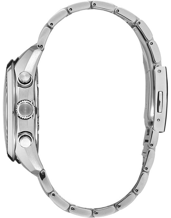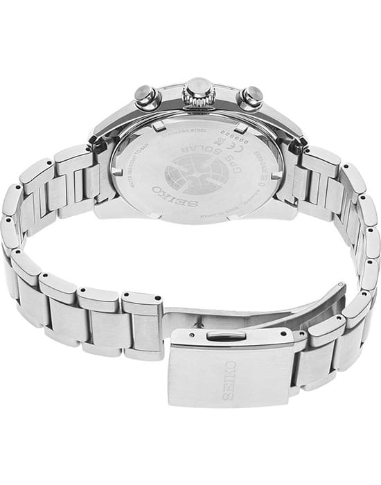 -приёмником, позволяющим определять и автоматически корректировать часовой пояс, дату, точное время. Модель получает энергию от солнечной панели, обеспечивая автономную работу часов. Японский кварцевый калибр Seiko 5X53 с точностью хода +/-15 секунд в месяц. Стекло из сапфира. Люминесцентная подсветкаЛюминесцентное покрытиеПозволяет считывать показания времени в темноте. Производители наносят на стрелки, часовые индексы, безель или поверхность циферблата светонакопительный состав, дающий холодное свечение. Lumibrite. Водостойкость 10 бар.Задняя крышка с гравировкой. Функция энергосбережения. Вечный календарьВечный календарьКлассическое часовое усложнение, представляющее собой календарь, рассчитанный на несколько лет вперёд (стандартно – до 2099 года). Определяет текущую дату, день недели, месяц. рассчитан до 28 февраля 2100 года. Мировое времяМировое время Полезное часовое усложнение, отображающее время в основных городах и известных областях по всему миру, оно связано с часовыми поясами, удобно для путешественников и бизнесменов. . Диаметр корпуса: 42,7 мм.