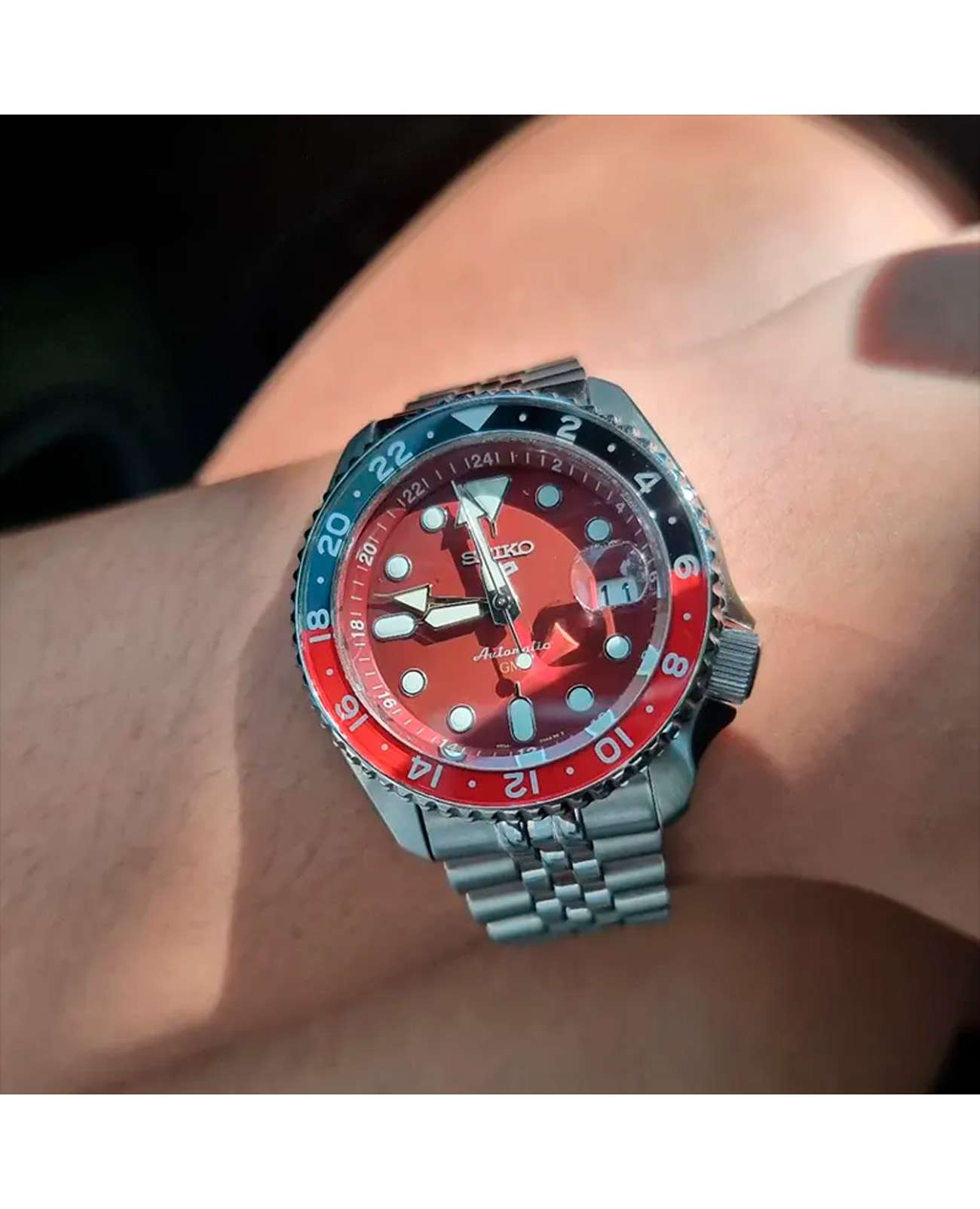 Мужские наручные часы Seiko SSK031K1 из коллекции 5 Sports сочетают в себе стильный дизайн и надежность современных технологий. Модель обладает круглым корпусом диаметром 42,5 мм, изготовленным из нержавеющей стали, что обеспечивает высокую устойчивость к внешним воздействиям. БезельБезельВнешний ободок, закрепляющий стекло. В спортивных часах так называется поворотное кольцо с делениями на циферблате, выполняет роль таймера – замеряет отрезки времени на шкале. Неподвижный безель – элемент декора. Однонаправленно вращающийся безель на дайверских часах позволяет фиксировать моменты погружения и выныривания на поверхность. с PVD-покрытиемPVDУльтратонкое покрытие наносится в технике вакуумного напыления, сочетает в себе нитрид титана особой прочности со слоем золота или оксида хрома. Несёт в себе декоративную или защитную функцию.. Для защиты циферблата используется минеральное стеклоМинеральное стеклоМинеральное стекло представляет собой искусственно выращенный минерал кварца. Такое стекло отличается особой устойчивостью к повреждениям и царапинам. Уступает по некоторым качествам сапфировому стеклу., которое эффективно противостоит царапинам и механическим повреждениям. Часы оснащены автоматическим механизмом с калибром 4R34, поддерживающим автоподзавод и имеющим запас хода около 41 часа. Водонепроницаемость модели достигает 10 атмосфер (100 метров), что позволяет использовать их во время плавания и других водных видов спорта. Стальной браслет на раскладной застёжкеРаскладная застёжкаТакой тип застёжки используется только на браслетах из металла. Она никогда не раскрывается полностью, происходит разделение на 2 и более частей. Раскладывающая застёжка снизит вероятность потери часов к минимуму.. Циферблат оснащен функцией индикации даты, центральной секундной стрелкой и люминесцентным покрытиемЛюминесцентное покрытиеПозволяет считывать показания времени в темноте. Производители наносят на стрелки, часовые индексы, безель или поверхность циферблата светонакопительный состав, дающий холодное свечение. стрелок и маркеров для удобства использования в темное время суток.