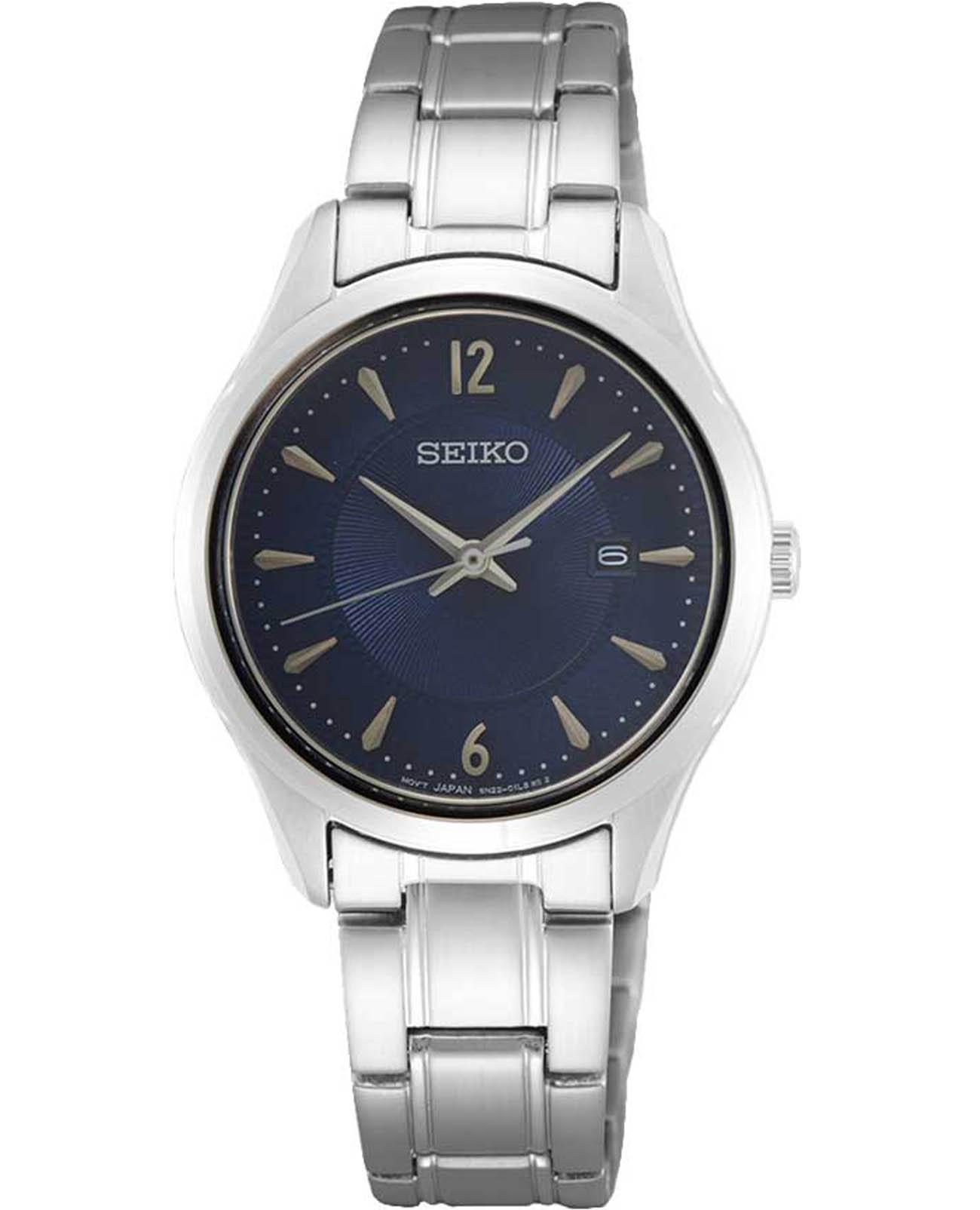 Женские японские часы Seiko Discover More SUR425P1 c кварцевым механизмом с высокой точностью. Сапфировое стеклоСапфировое стеклоПрочный и надёжный материал из кристалла сапфира синтетического происхождения, характеризующийся особой твёрдостью и устойчивостью к царапинам и повреждениям., устойчивое к появлению царапин, обладающее высокой прозрачностью. Класс водозащиты: 100 метров, позволит плавать, нырять и заниматься другими водными видами спорта. Серебристый корпус и браслет часов изготовлен из нержавеющей стали. Окошко даты в позиции 3 часа. Браслет с тройной раскладной застёжкойРаскладная застёжкаТакой тип застёжки используется только на браслетах из металла. Она никогда не раскрывается полностью, происходит разделение на 2 и более частей. Раскладывающая застёжка снизит вероятность потери часов к минимуму.. Seiko — это гармония изящного дизайна и технологичной надёжности, компактный и стильный выбор для повседневной классики.