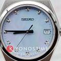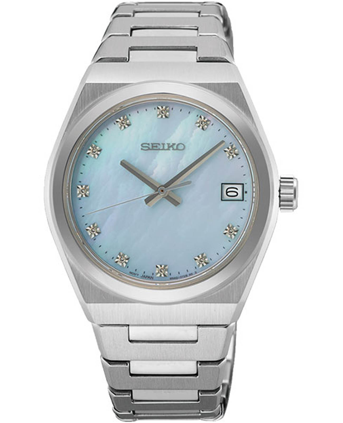 Женские японские часы Seiko Conceptual Series Dress SUR603P1 c кварцевым механизмом с высокой точностью с калибром 6N42. Сапфировое стеклоСапфировое стеклоПрочный и надёжный материал из кристалла сапфира синтетического происхождения, характеризующийся особой твёрдостью и устойчивостью к царапинам и повреждениям. с антибликовым покрытиемАнтибликовое покрытиеСлой оксида металла в 0,13-0,3 микрон, благодаря которому стекло часов не бликует и не отражает свет. Антибликовое покрытие уменьшает отражение света в 10 раз, обеспечивая отличную читаемость показателей циферблата. , устойчивое к появлению царапин, обладающее высокой прозрачностью. Класс водозащиты: 100 метров, позволит плавать, нырять и заниматься другими водными видами спорта. Корпус и браслет изготовлены из нержавеющей стали. Браслет с раскладной застёжкойРаскладная застёжкаТакой тип застёжки используется только на браслетах из металла. Она никогда не раскрывается полностью, происходит разделение на 2 и более частей. Раскладывающая застёжка снизит вероятность потери часов к минимуму.. Голубой циферблат украшен бриллиантами. Окошко даты находится в позиции 3 часов. Seiko — это гармония изящного дизайна и технологичной надёжности, компактный и стильный выбор для повседневной классики.