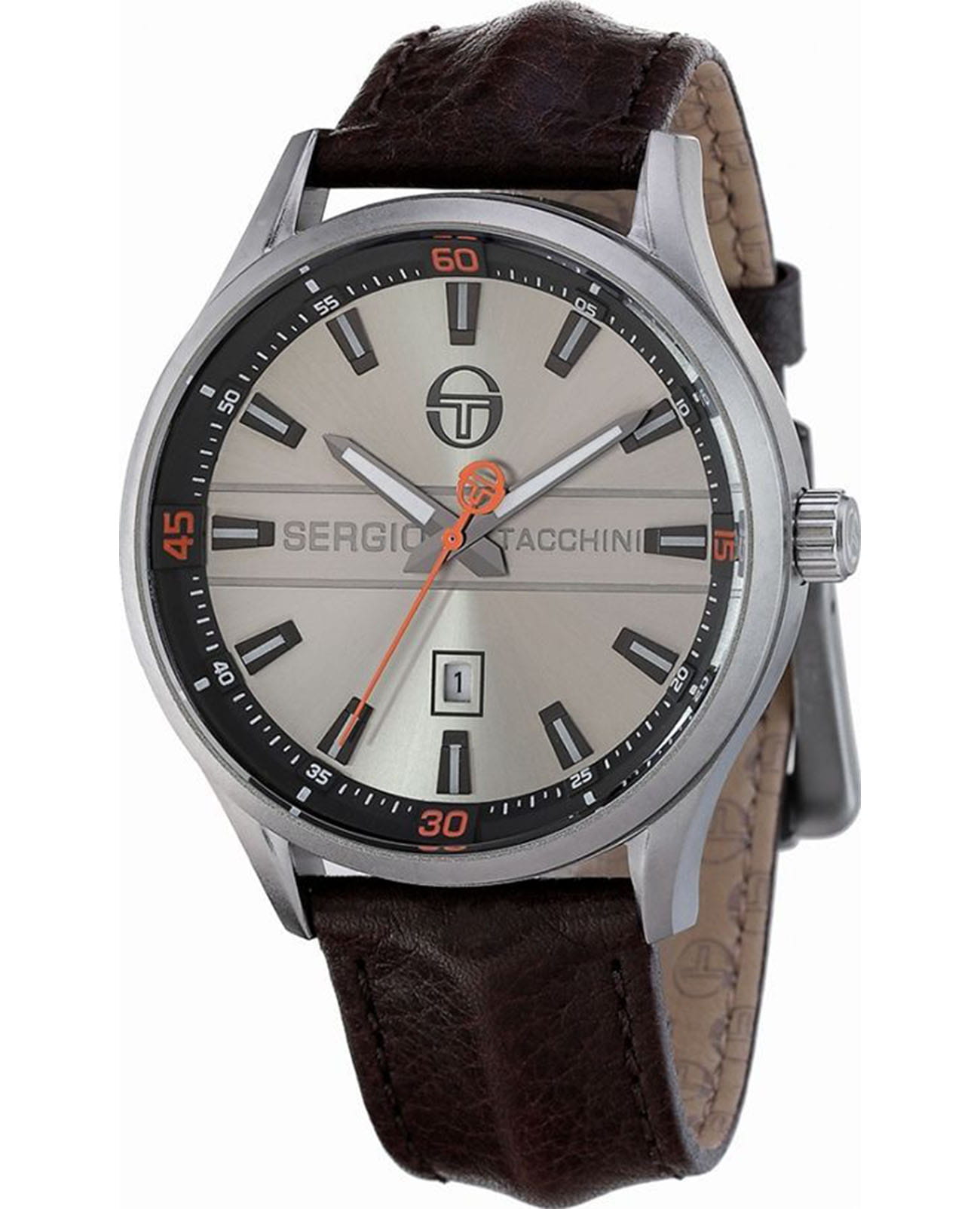 Мужские кварцевые часы Sergio Tacchini из коллекции Coastlife — это стильный аксессуар, сочетающий классический дизайн и современные материалы. Корпус диаметром 44 мм выполнен из нержавеющей стали 316L с IP-покрытиемIP-покрытиеМетод ионного напыления. Демонстрирует повышенную устойчивость к истиранию, окислению и химическим веществам. Под воздействием высокого давления и температуры около 1500°C молекулы металла надёжно соединяются с частицами корпуса часов.. Циферблат серого цвета оформлен индексами и стрелками. Окошко даты расположено в положении 6 часов. Циферблат защищён минеральным стекломМинеральное стеклоМинеральное стекло представляет собой искусственно выращенный минерал кварца. Такое стекло отличается особой устойчивостью к повреждениям и царапинам. Уступает по некоторым качествам сапфировому стеклу.. Механизм — японский кварцевый калибр Miyota 2115. Часы оснащены кожаным ремешком коричневого цвета с стандартной застёжкой. Водонепроницаемость 50 м позволяет использовать часы в повседневных условиях. Идеальный выбор для тех, кто ценит надёжность и элегантный внешний вид.