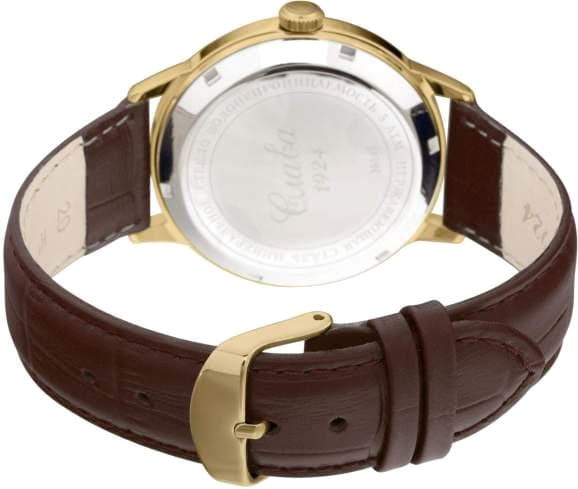 Российские механические наручные часы Слава 1459055/8215-300, которые станут идеальным аксессуаром для повседневного ношения. Эти часы сочетают в себе элегантность и практичность, предлагая безупречный стиль и надежность. Оснащенные механизмом Miyota 8215 с автоподзаводом, они обеспечивают точность и долговечность, поддерживая запас хода до 42 часов. Стальной корпус с IP-покрытиемIP-покрытиеМетод ионного напыления. Демонстрирует повышенную устойчивость к истиранию, окислению и химическим веществам. Под воздействием высокого давления и температуры около 1500°C молекулы металла надёжно соединяются с частицами корпуса часов. и минеральным стекломМинеральное стеклоМинеральное стекло представляет собой искусственно выращенный минерал кварца. Такое стекло отличается особой устойчивостью к повреждениям и царапинам. Уступает по некоторым качествам сапфировому стеклу. защищает золотистый циферблат, выполненный по технологии Sunray. Стрелки в стиле Baton с люминесцентным покрытиемЛюминесцентное покрытиеПозволяет считывать показания времени в темноте. Производители наносят на стрелки, часовые индексы, безель или поверхность циферблата светонакопительный состав, дающий холодное свечение. облегчают чтение времени даже в условиях слабого освещения. На циферблате изображены герб Российской Федерации и автограф В.В. Путина. Часы также имеют календарь с окошком даты на 3 часах и водозащиту до 50WR, что делает их надежными в различных условиях. Текстурированный кожаный ремешок с классической застежкой завершает этот изысканный образ.