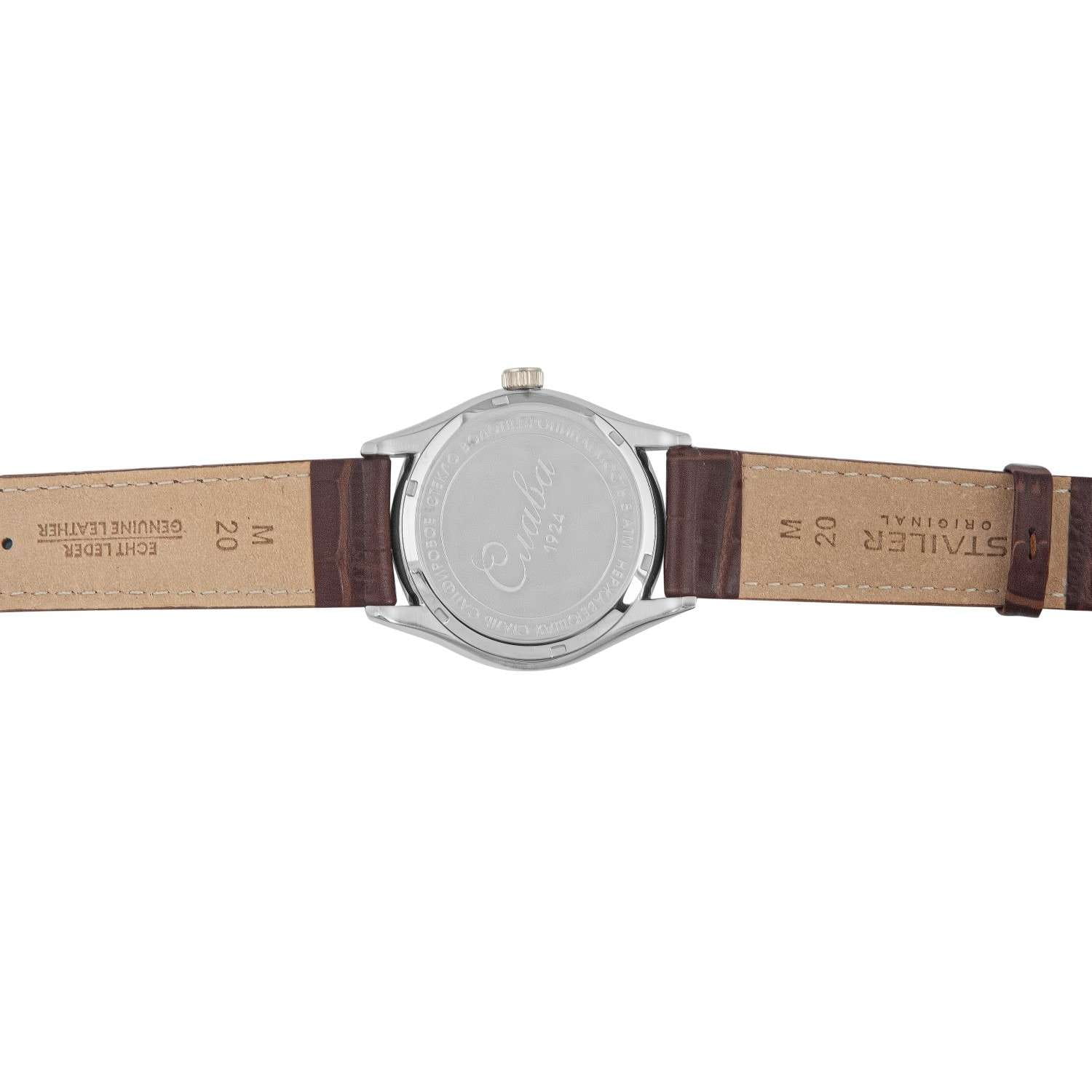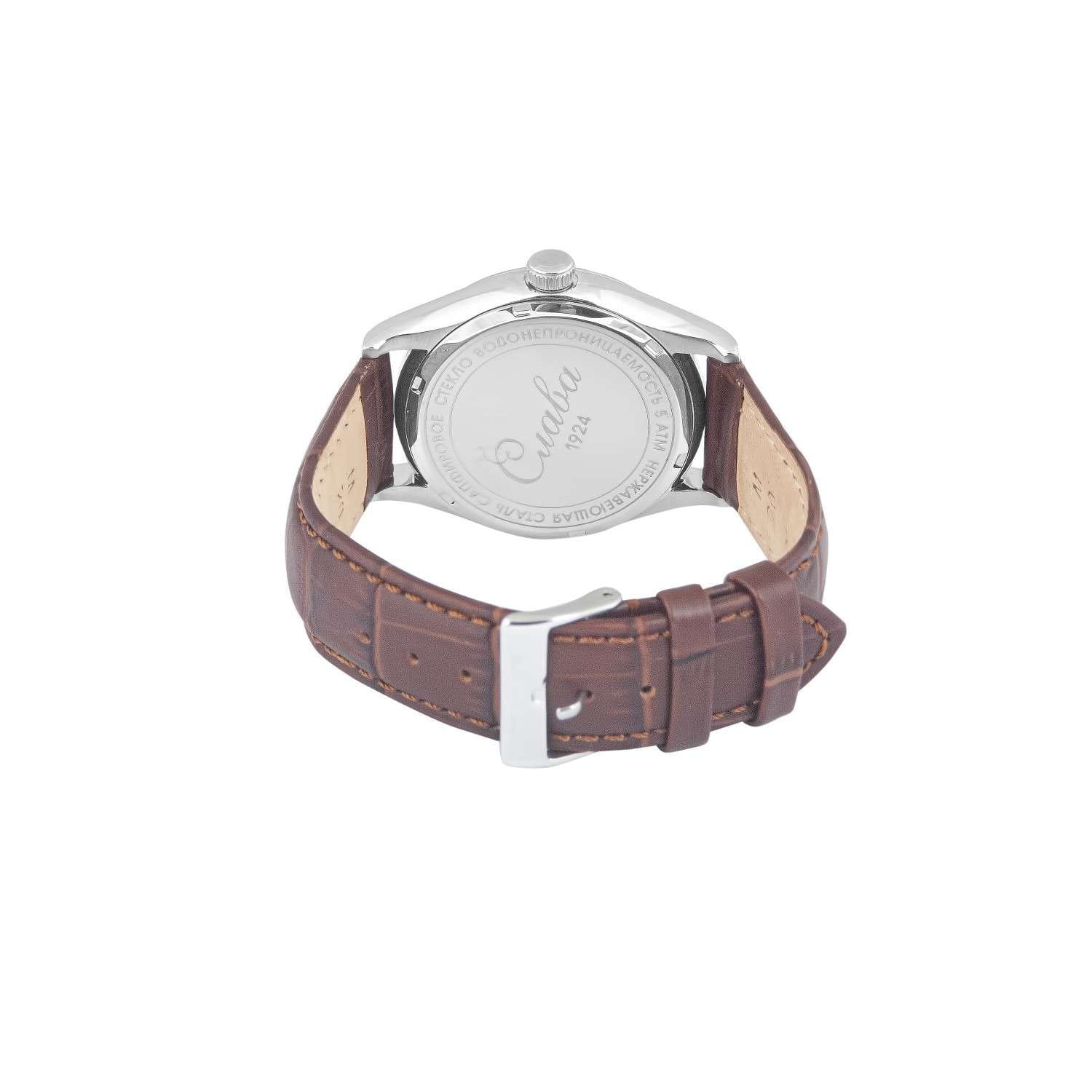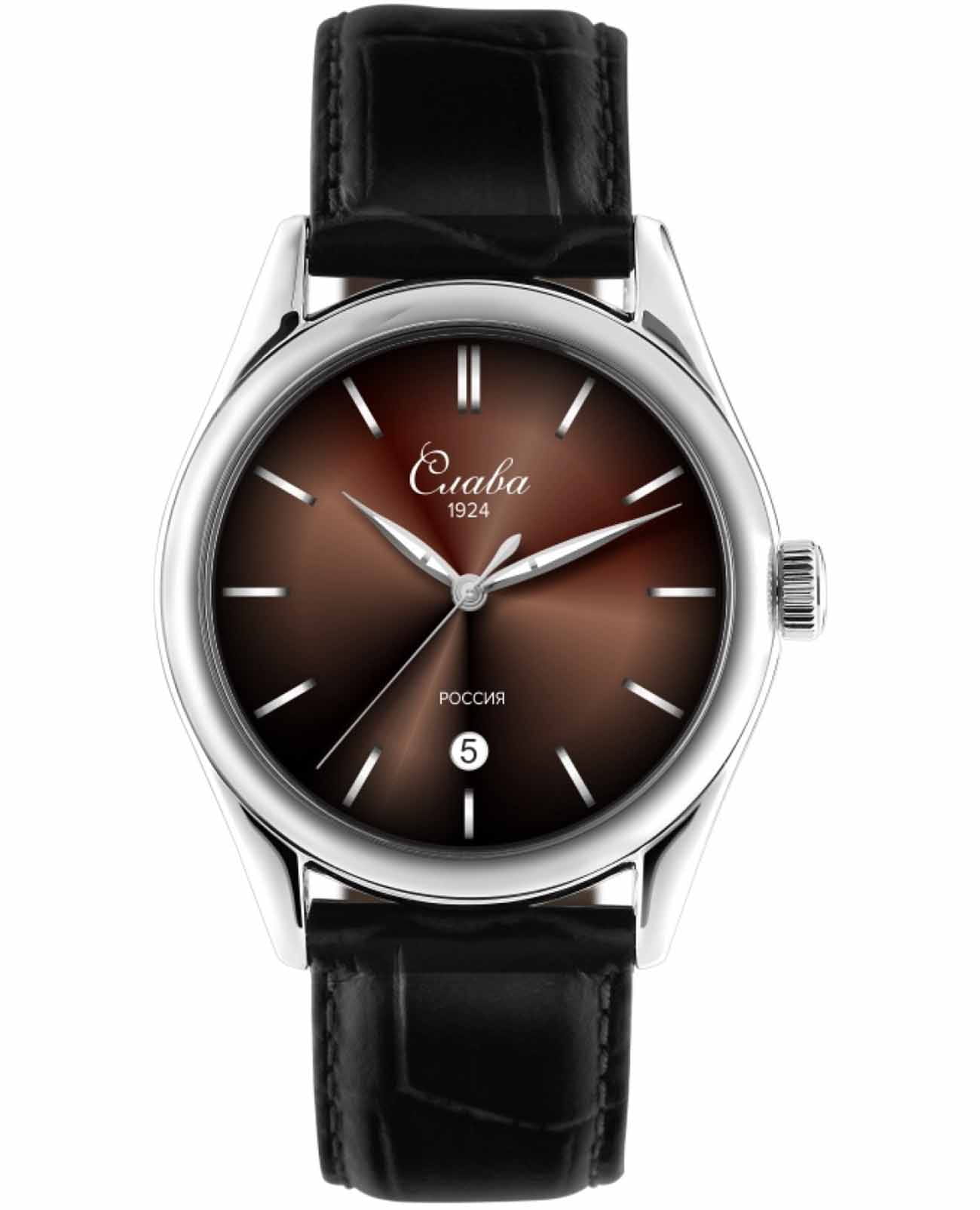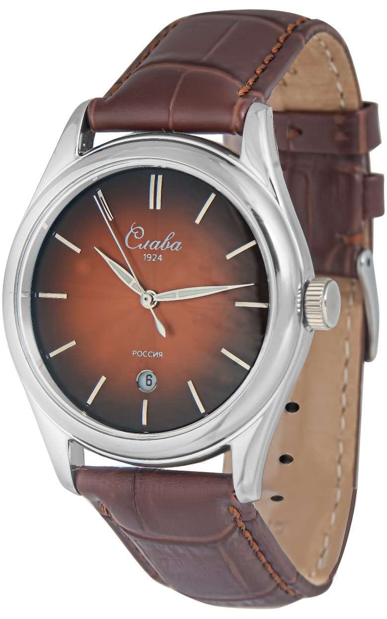 Российские наручные часы Слава Сенат 2490530/300-2115 станут отличным дополнением к вашему образу и идеальным выбором для тех, кто ценит стиль, комфорт и надежность. Эти часы оснащены японским кварцевым механизмом Miyota 2115, что гарантирует их точность и долговечность. Корпус часов диаметром 38 мм и толщиной 11 мм выполнен из прочной стали, а коричневый циферблат с эффектом "солнечные лучи" изящными метками защищен сапфировым стекломСапфировое стеклоПрочный и надёжный материал из кристалла сапфира синтетического происхождения, характеризующийся особой твёрдостью и устойчивостью к царапинам и повреждениям., устойчивым к царапинам. Окошко календаря, расположенное в положении 6 часов, добавляет функциональности и удобства в повседневном использовании. Стрелки с люминесцентным покрытиемЛюминесцентное покрытиеПозволяет считывать показания времени в темноте. Производители наносят на стрелки, часовые индексы, безель или поверхность циферблата светонакопительный состав, дающий холодное свечение., что облегчает чтение времени даже в условиях слабого освещения. Эти часы обладают водозащитой 50WR, что позволяет не переживать за их сохранность в условиях повышенной влажности. Завершает образ кожаный ремешок с классической застежкой, обеспечивающий комфортную посадку на запястье.