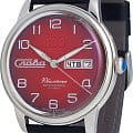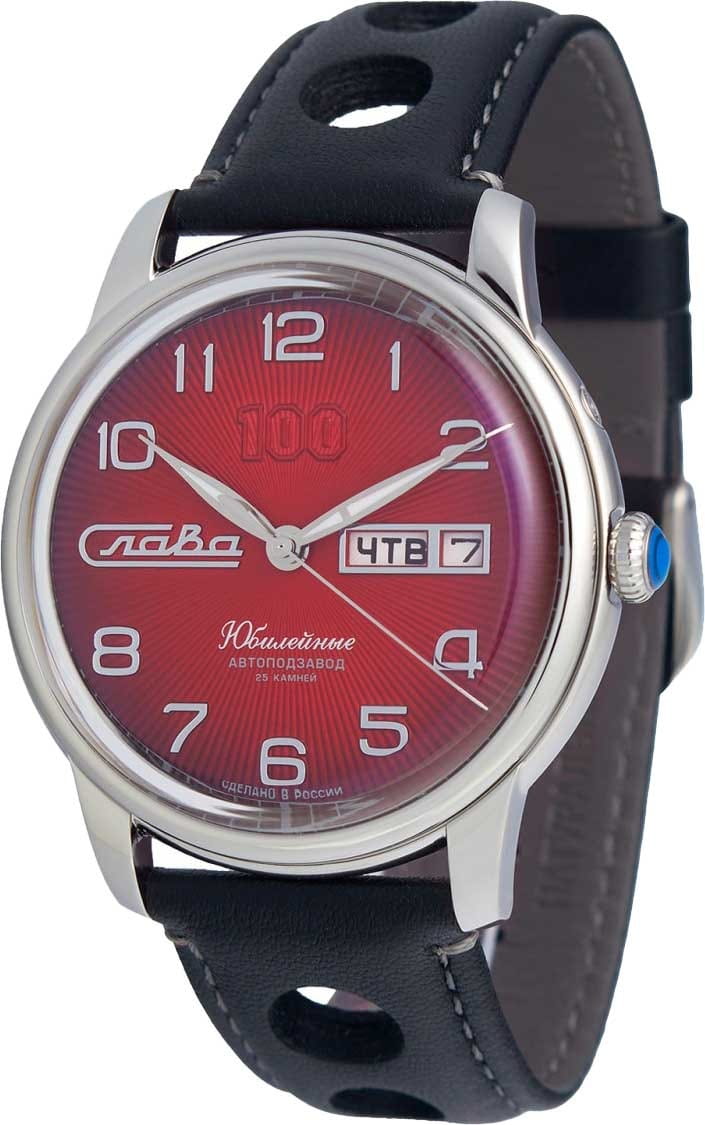 Часы Слава Юбилейные 2600675/300-2427 представляют собой воплощение российского часового искусства, сочетая в себе традиции и современные технологии. Эти механические часы с автоподзаводом оснащены калибром «Слава 2427», который обеспечивает надежную и точную работу. Корпус из высококачественной стали диаметром 44 мм и толщиной 14,5 мм придает часам солидность и долговечность. Циферблат выполнен в благородном красном цвете и оформлен арабскими цифрами, обеспечивая удобство чтения времени. Прочное выпуклое сапфировое стеклоСапфировое стеклоПрочный и надёжный материал из кристалла сапфира синтетического происхождения, характеризующийся особой твёрдостью и устойчивостью к царапинам и повреждениям. защищает циферблат от царапин и повреждений. Особенностью модели является наличие календаря, отображающего число и день недели в положении 3 часа. Стрелки с люминесцентным покрытиемЛюминесцентное покрытиеПозволяет считывать показания времени в темноте. Производители наносят на стрелки, часовые индексы, безель или поверхность циферблата светонакопительный состав, дающий холодное свечение., что облегчает чтение времени даже в условиях слабого освещения. Часы обладают водозащитой уровня 100WR, что делает их подходящими для повседневного ношения и активного образа жизни. Кожаный ремешок с классической застежкой добавляет модели изысканности и комфорта в носке. Эта модель представлена в лимитированной серии из 300 экземпляров, что делает её не только надежным функциональным аксессуаром, но и ценным предметом для коллекционеров. Прозрачная задняя крышка позволяет наблюдать за работой механизма, который включает в себя 25 камней и имеет частоту 18000 полуколебаний в час. Запас хода составляет до 40 часов, а противоударное устройство оси баланса обеспечивает дополнительную надежность.