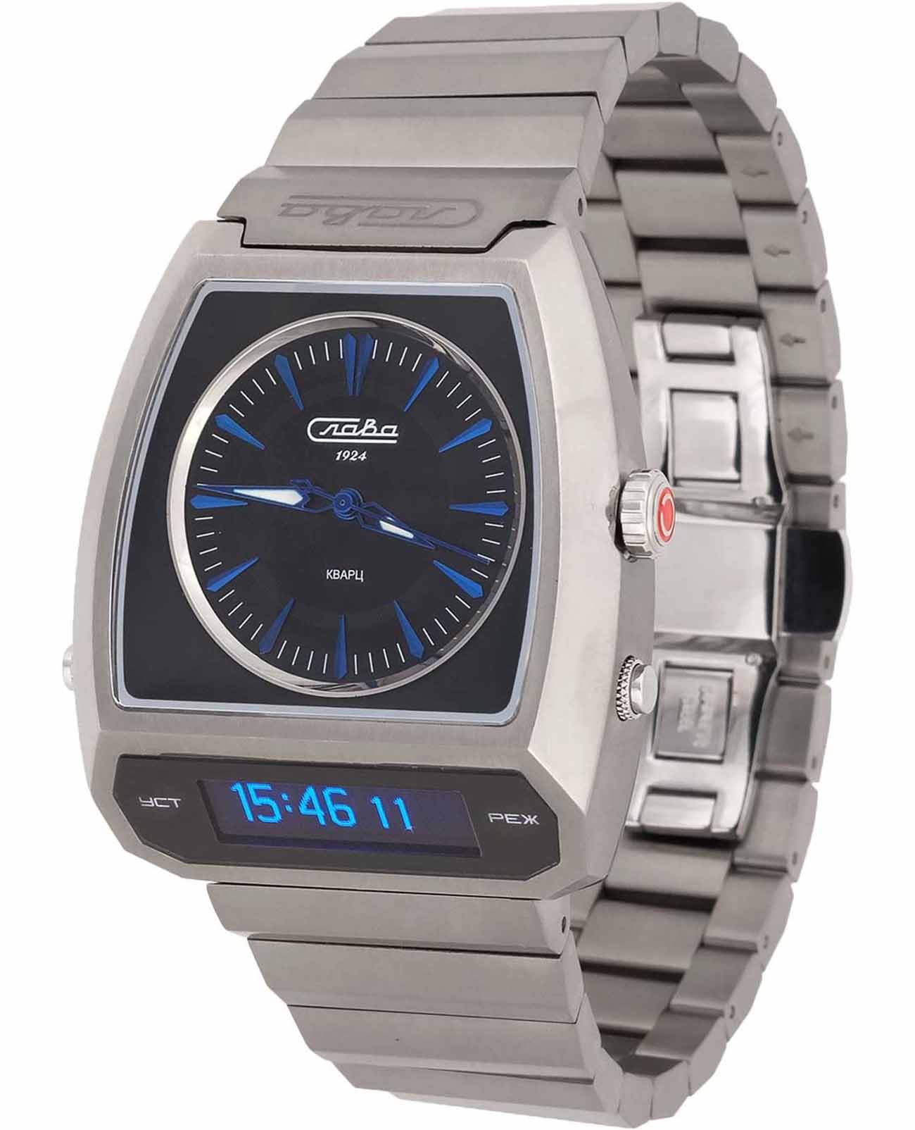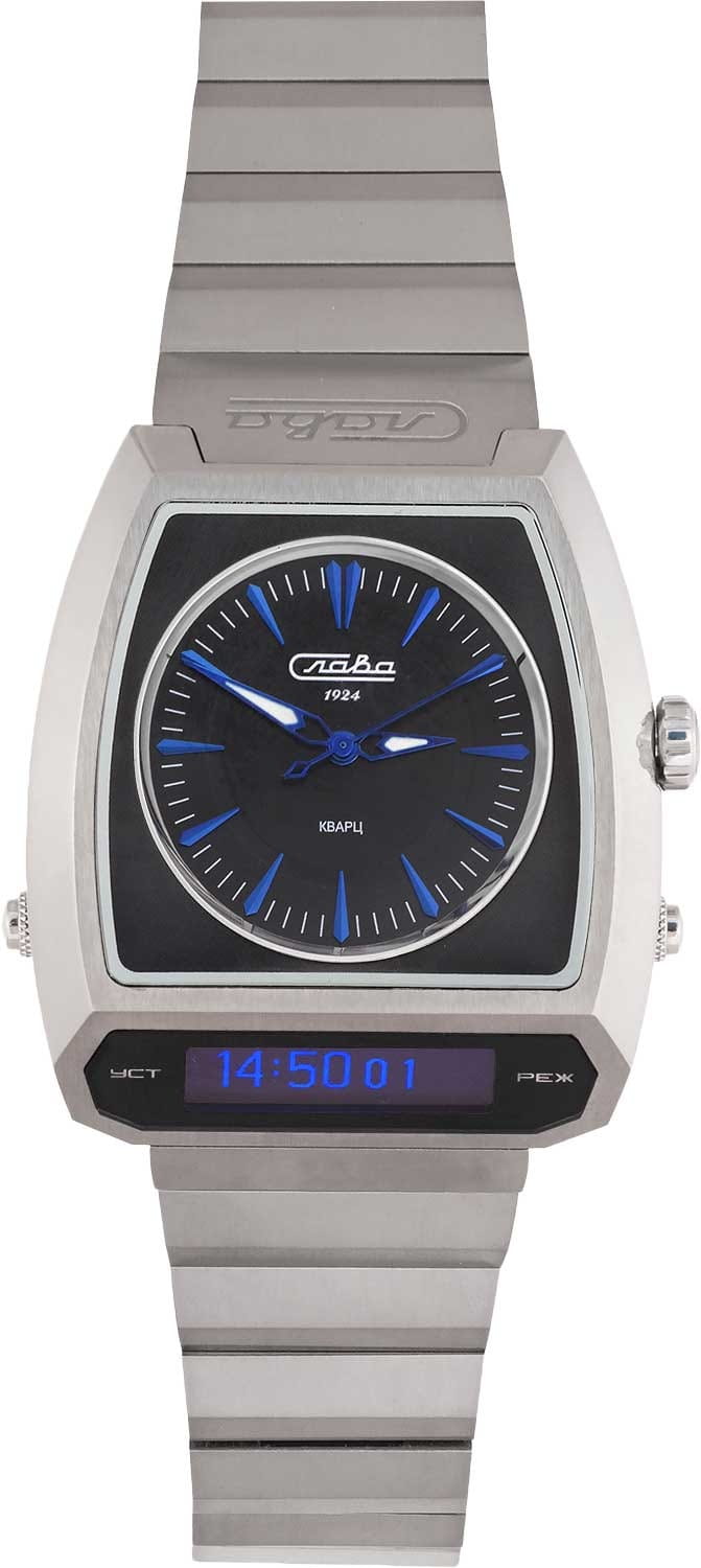 Часы Слава 9007738/100-GL32 представляют собой уникальное сочетание ретро-стиля и современных технологий, которые обязательно привлекут внимание коллекционеров и ценителей эксклюзивных аксессуаров. Выпущенные в России, эти лимитированные часы вдохновлены дизайном моделей для водителей, популярных в 1970-х годах. В основе их создания лежит концепция, позволяющая легко считывать время, не отрывая рук от руля, что делает их особенно удобными для автолюбителей. Корпус и браслет изготовлены из легкого и прочного титана, придающего часам элегантный и современный вид. Часы оснащены двумя механизмами, включая кварцевый механизм калибра Miyota GL32 и специально разработанный электронный механизм, который позволяет одновременно отображать время в двух часовых поясах. Черный циферблат с штриховыми метками надежно защищен сапфировым стекломСапфировое стеклоПрочный и надёжный материал из кристалла сапфира синтетического происхождения, характеризующийся особой твёрдостью и устойчивостью к царапинам и повреждениям., устойчивым к царапинам. Стрелки с люминесцентным покрытиемЛюминесцентное покрытиеПозволяет считывать показания времени в темноте. Производители наносят на стрелки, часовые индексы, безель или поверхность циферблата светонакопительный состав, дающий холодное свечение., что облегчает чтение времени даже в условиях слабого освещения. Дополнительные функции включают будильник, секундомер, таймер обратного отсчета и автоматический календарь, который отображает число, день недели, месяц и год. Рифленая заводная головка и задняя крышка, крепящаяся на винтах, подчеркивают внимание к деталям. Индивидуальный номер, выгравированный на боковой стенке, подтверждает эксклюзивность каждой модели. Титановый браслет с застежкой «бабочка»Застёжка "бабочка"Такой вид застёжки дополняется предохранителями, помогающими избежать случайного раскрытия браслета. Обладают изящным исполнением. обеспечивает надежную фиксацию на запястье. Лимитированная серия ограничена 500 экземплярами, что подчеркивает их уникальность. Часы поставляются в подарочной упаковке, что делает их идеальным выбором для подарка или личной коллекции. Часы обладают водозащитой уровня WR 50, что позволяет им выдерживать воздействие воды в повседневных ситуациях.