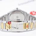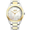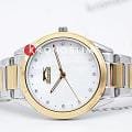 Женские наручные часы Slazenger SL.09.2013.3.04 из коллекции, сочетающей элегантность и практичность в классическом дизайне. Модель обладает круглым корпусом диаметром 35 мм, изготовленным из суперметалла, что обеспечивает высокую устойчивость к внешним воздействиям. БезельБезельВнешний ободок, закрепляющий стекло. В спортивных часах так называется поворотное кольцо с делениями на циферблате, выполняет роль таймера – замеряет отрезки времени на шкале. Неподвижный безель – элемент декора. Однонаправленно вращающийся безель на дайверских часах позволяет фиксировать моменты погружения и выныривания на поверхность. с IP-покрытиемIP-покрытиеМетод ионного напыления. Демонстрирует повышенную устойчивость к истиранию, окислению и химическим веществам. Под воздействием высокого давления и температуры около 1500°C молекулы металла надёжно соединяются с частицами корпуса часов.. Циферблат украшен кристаллами в виде фианитов, добавляя модели особую роскошь и шарм. Для защиты используется минеральное стеклоМинеральное стеклоМинеральное стекло представляет собой искусственно выращенный минерал кварца. Такое стекло отличается особой устойчивостью к повреждениям и царапинам. Уступает по некоторым качествам сапфировому стеклу., обеспечивающее надежную защиту от царапин. Часы комплектуются браслетом из нержавеющей стали с комбинированным цветом серебро с золотом и раскладной застежкойРаскладной замокДанный вариант застежки используется только на часах с металлическим браслетом. Отличительная особенность такого крепления в том, что длина браслета становится универсальной и вы можете самостоятельно отрегулировать нужный вам размер – застежка просто двигается по браслету часов., гарантирующей комфортное ношение. Модель работает на кварцевом механизме, что обеспечивает высокую точность хода времени. Водонепроницаемость часов составляет 3 атмосферы (30 метров), подходящую для ежедневного использования, но не рекомендуется для плавания или дайвинга.
