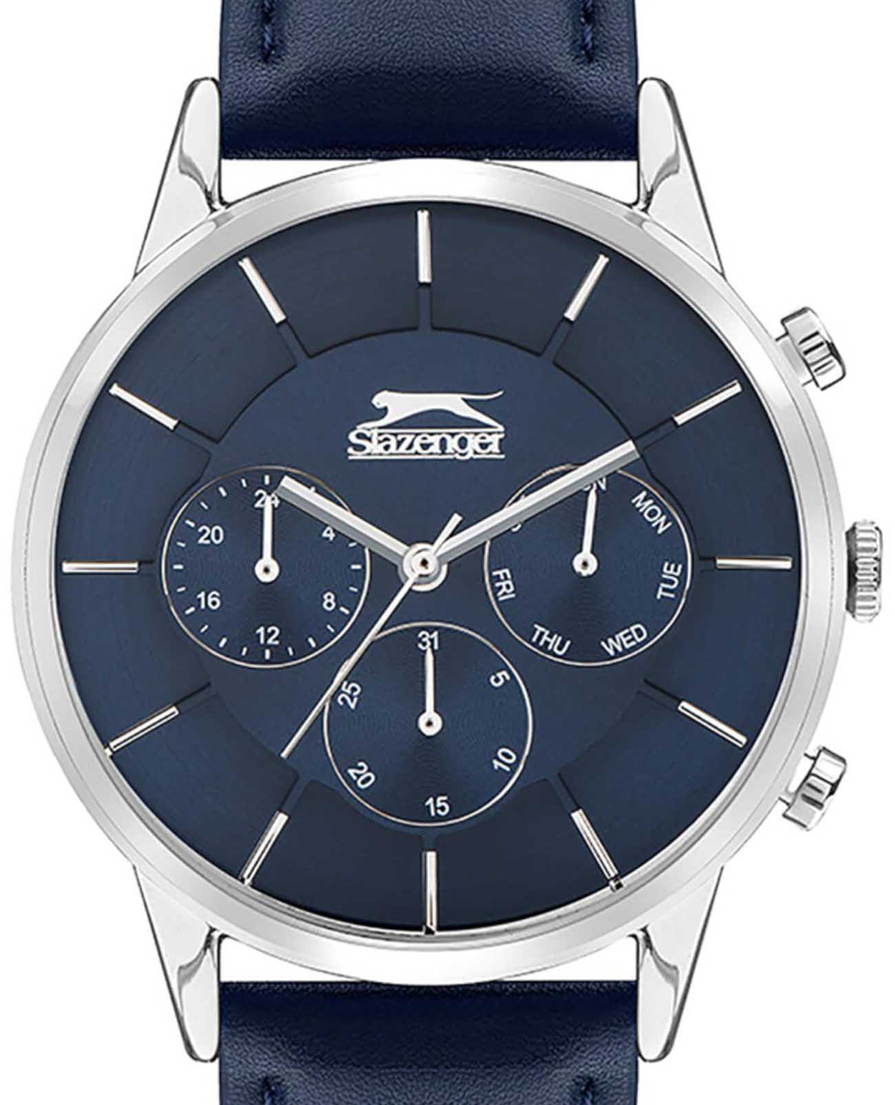 Slazenger SL.09.2020.2.04 – стильные мужские часы, сочетающие современный дизайн и функциональность. Корпус диаметром 44 мм выполнен из суперметалла, обеспечивая прочность и долговечность. Циферблат с метками и стрелками защищён минеральным стекломМинеральное стеклоМинеральное стекло представляет собой искусственно выращенный минерал кварца. Такое стекло отличается особой устойчивостью к повреждениям и царапинам. Уступает по некоторым качествам сапфировому стеклу., устойчивым к царапинам. Часы оснащены точным кварцевым механизмом, обеспечивающим надёжное отображение времени. Дополнительные функции включают отображение даты, что повышает практичность модели. Кожаный ремешок с классической пряжкой обеспечивает комфортное ношение и надёжную фиксацию на запястье. Водозащита до 50 метров (5 ATM) позволяет использовать часы в повседневной жизни, включая кратковременное погружение в воду.
