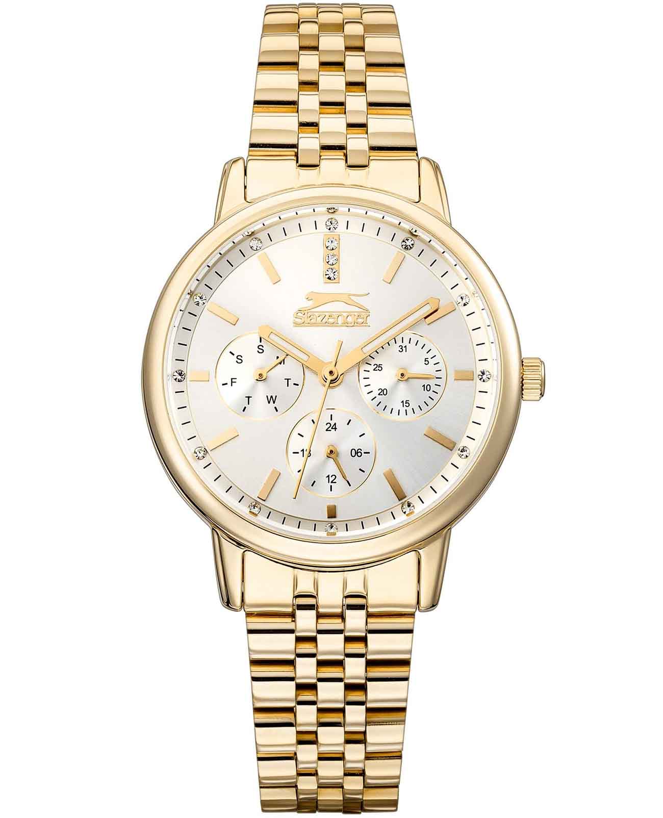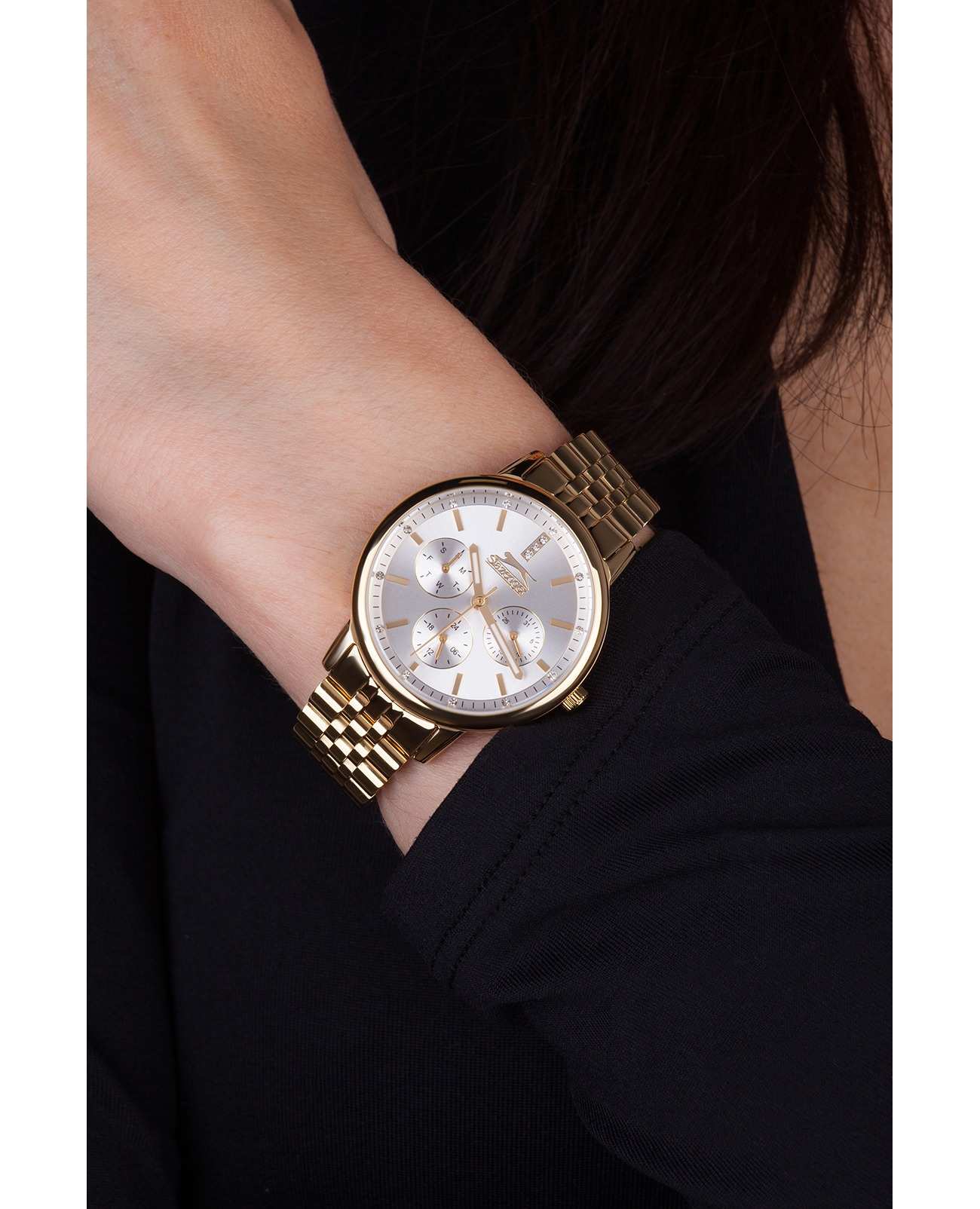 Часы Slazenger SL.09.2050.4.03 — это элегантное сочетание стиля и функциональности, созданное специально для женщин. Их изысканный серебристый циферблат и корпус с безелемБезельВнешний ободок, закрепляющий стекло. В спортивных часах так называется поворотное кольцо с делениями на циферблате, выполняет роль таймера – замеряет отрезки времени на шкале. Неподвижный безель – элемент декора. Однонаправленно вращающийся безель на дайверских часах позволяет фиксировать моменты погружения и выныривания на поверхность. из суперметалла с IP-покрытиемIP-покрытиеМетод ионного напыления. Демонстрирует повышенную устойчивость к истиранию, окислению и химическим веществам. Под воздействием высокого давления и температуры около 1500°C молекулы металла надёжно соединяются с частицами корпуса часов. придают часам современный и утонченный вид. Внутри скрыт надежный кварцевый механизм, который гарантирует точность и долговечность. Минеральное стеклоМинеральное стеклоМинеральное стекло представляет собой искусственно выращенный минерал кварца. Такое стекло отличается особой устойчивостью к повреждениям и царапинам. Уступает по некоторым качествам сапфировому стеклу. защищает часы от царапин, а украшение из фианитов добавляет изысканный акцент. Люминесцентное покрытиеЛюминесцентное покрытиеПозволяет считывать показания времени в темноте. Производители наносят на стрелки, часовые индексы, безель или поверхность циферблата светонакопительный состав, дающий холодное свечение. на стрелках позволяют легко считывать время даже в темноте. Функциональность часов дополнена 24-часовым указателем времени, календарем даты и дня недели. Браслет из суперметалла с IP-покрытиемIP-покрытиеМетод ионного напыления. Демонстрирует повышенную устойчивость к истиранию, окислению и химическим веществам. Под воздействием высокого давления и температуры около 1500°C молекулы металла надёжно соединяются с частицами корпуса часов. и раскладной застёжкойРаскладная застёжкаТакой тип застёжки используется только на браслетах из металла. Она никогда не раскрывается полностью, происходит разделение на 2 и более частей. Раскладывающая застёжка снизит вероятность потери часов к минимуму. подчеркивает женственность дизайна и обеспечивает комфорт в носке. Диаметр корпуса составляет 35 мм, а толщина — 9 мм, что делает их идеальным аксессуаром для любой стильной женщины. Водозащита уровня 3 ATM позволяет не беспокоиться о случайных брызгах.