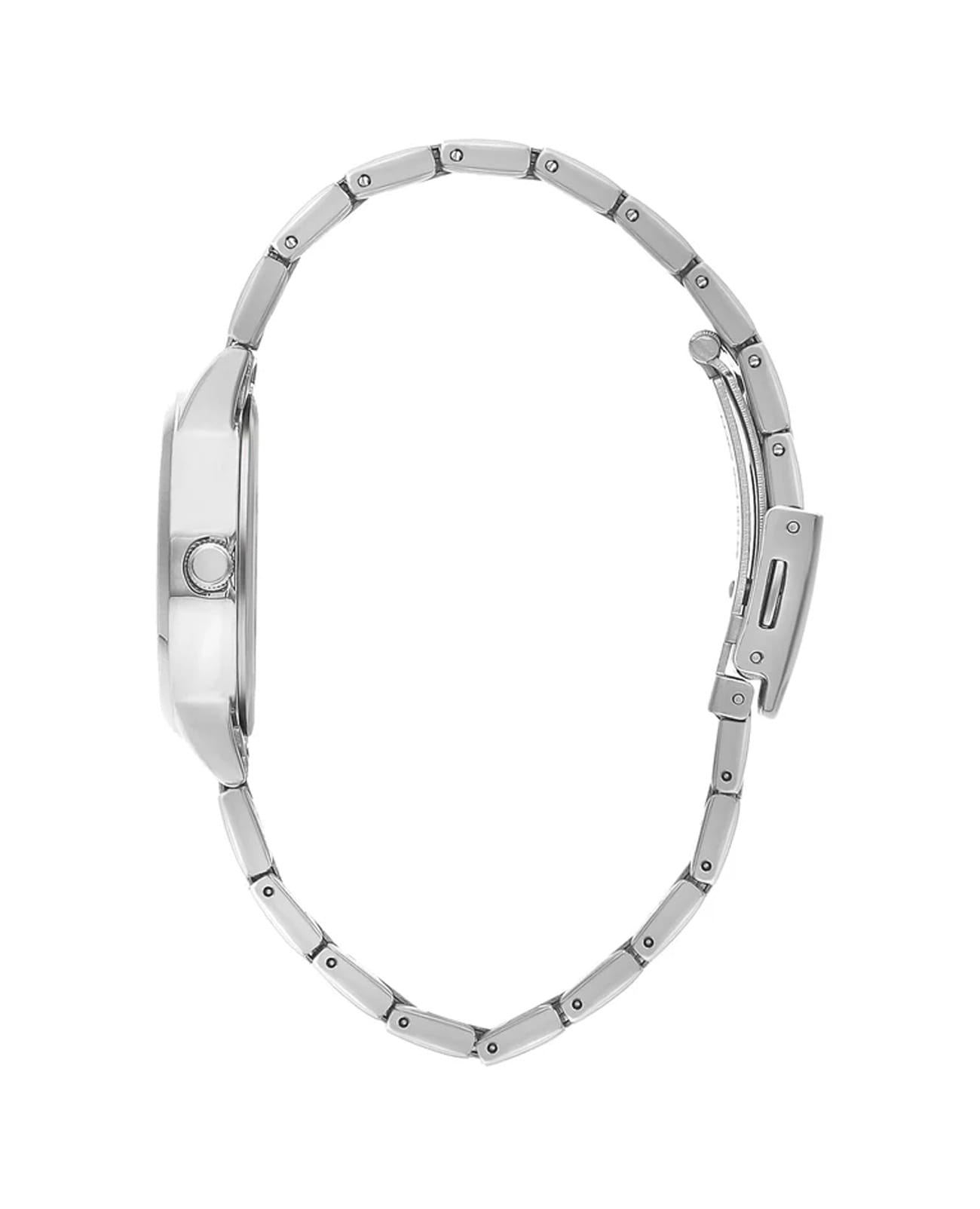 Женские наручные часы Slazenger SL.09.2071.3.01 сочетают в себе элегантный дизайн и надежность современных технологий. Модель обладает круглым корпусом диаметром 32 мм, изготовленным из суперметалла, что обеспечивает высокую устойчивость к внешним воздействиям. Браслет выполнен из стали с раскладной застежкойРаскладной замокДанный вариант застежки используется только на часах с металлическим браслетом. Отличительная особенность такого крепления в том, что длина браслета становится универсальной и вы можете самостоятельно отрегулировать нужный вам размер – застежка просто двигается по браслету часов., гарантирующей комфортное ношение и безопасность. Белый циферблат украшен кристаллами, добавляя модели особую изысканность. Для защиты используется минеральное стеклоМинеральное стеклоМинеральное стекло представляет собой искусственно выращенный минерал кварца. Такое стекло отличается особой устойчивостью к повреждениям и царапинам. Уступает по некоторым качествам сапфировому стеклу., обеспечивающее прочную защиту от царапин. Часы работают на японском кварцевом механизме, что гарантирует точное время без необходимости подзаводки. Водонепроницаемость часов достигает 3 атмосфер (30 метров), что позволяет использовать их при контакте с брызгами воды, однако не рекомендуется для плавания или дайвинга.