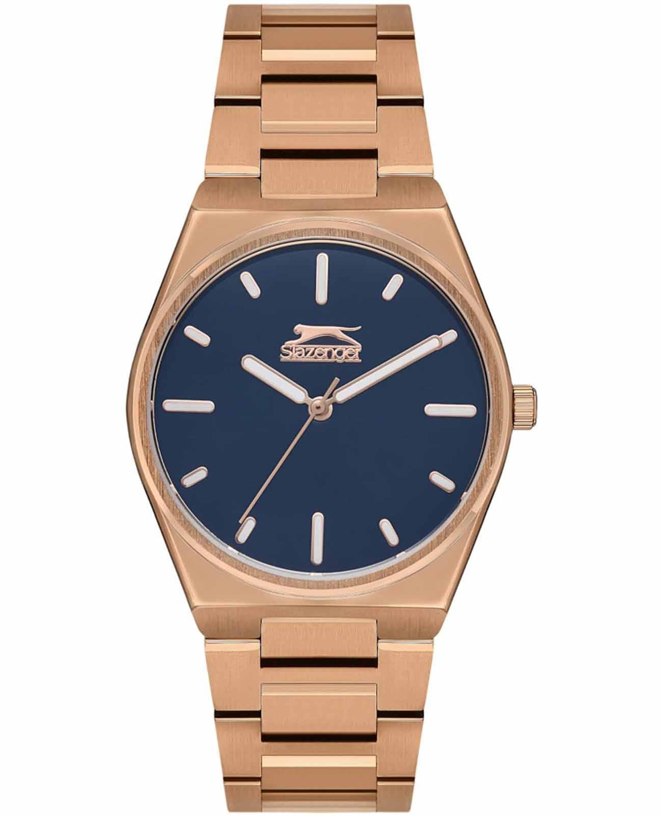 Женские наручные часы Slazenger SL.09.2116.3.02 — это элегантный аксессуар, сочетающий в себе стиль и функциональность. Модель обладает круглым корпусом диаметром 34 мм. Корпус и браслет часов выполнены из суперметалла с IP-покрытиемIP-покрытиеМетод ионного напыления. Демонстрирует повышенную устойчивость к истиранию, окислению и химическим веществам. Под воздействием высокого давления и температуры около 1500°C молекулы металла надёжно соединяются с частицами корпуса часов. цвета розового золота, что обеспечивает устойчивость к царапинам и коррозии. Браслет с раскладной застежкойРаскладная застёжкаТакой тип застёжки используется только на браслетах из металла. Она никогда не раскрывается полностью, происходит разделение на 2 и более частей. Раскладывающая застёжка снизит вероятность потери часов к минимуму., которая гарантирует удобство и надежность при ношении. Для защиты синего циферблата используется минеральное стеклоМинеральное стеклоМинеральное стекло представляет собой искусственно выращенный минерал кварца. Такое стекло отличается особой устойчивостью к повреждениям и царапинам. Уступает по некоторым качествам сапфировому стеклу., устойчивое к царапинам и повреждениям. Люминесцентное покрытиеЛюминесцентное покрытиеПозволяет считывать показания времени в темноте. Производители наносят на стрелки, часовые индексы, безель или поверхность циферблата светонакопительный состав, дающий холодное свечение. на стрелках и метках обеспечивает отличную видимость в темноте. Часы оснащены кварцевым механизмом, обеспечивающим точность хода с минимальной погрешностью. Водонепроницаемость модели составляет 30 метров (3 ATM), что позволяет использовать их при мытье рук или под дождем, но не рекомендуется для плавания или дайвинга.