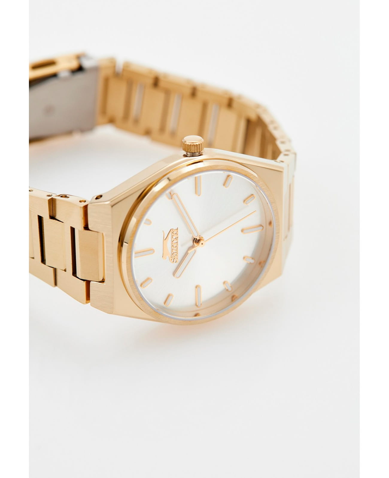 Женские наручные часы Slazenger SL.09.2116.3.05 — это элегантный аксессуар, сочетающий в себе стиль и функциональность. Модель обладает круглым корпусом диаметром 34 мм. Корпус и браслет часов выполнены из суперметалла с IP-покрытиемIP-покрытиеМетод ионного напыления. Демонстрирует повышенную устойчивость к истиранию, окислению и химическим веществам. Под воздействием высокого давления и температуры около 1500°C молекулы металла надёжно соединяются с частицами корпуса часов., что обеспечивает устойчивость к царапинам и коррозии. Браслет  с раскладной застежкойРаскладная застёжкаТакой тип застёжки используется только на браслетах из металла. Она никогда не раскрывается полностью, происходит разделение на 2 и более частей. Раскладывающая застёжка снизит вероятность потери часов к минимуму., которая гарантирует удобство и надежность при ношении. Для защиты циферблата используется минеральное стеклоМинеральное стеклоМинеральное стекло представляет собой искусственно выращенный минерал кварца. Такое стекло отличается особой устойчивостью к повреждениям и царапинам. Уступает по некоторым качествам сапфировому стеклу., устойчивое к царапинам и повреждениям. Часы оснащены кварцевым механизмом, обеспечивающим точность хода с минимальной погрешностью. Водонепроницаемость модели составляет 30 метров (3 ATM), что позволяет использовать их при мытье рук или под дождем, но не рекомендуется для плавания или дайвинга. Вес часов — 83 грамма, что обеспечивает комфортное ношение. Slazenger SL.09.2116.3.05 — это стильный аксессуар, который подчеркнет элегантность и утонченность образа современной женщины.